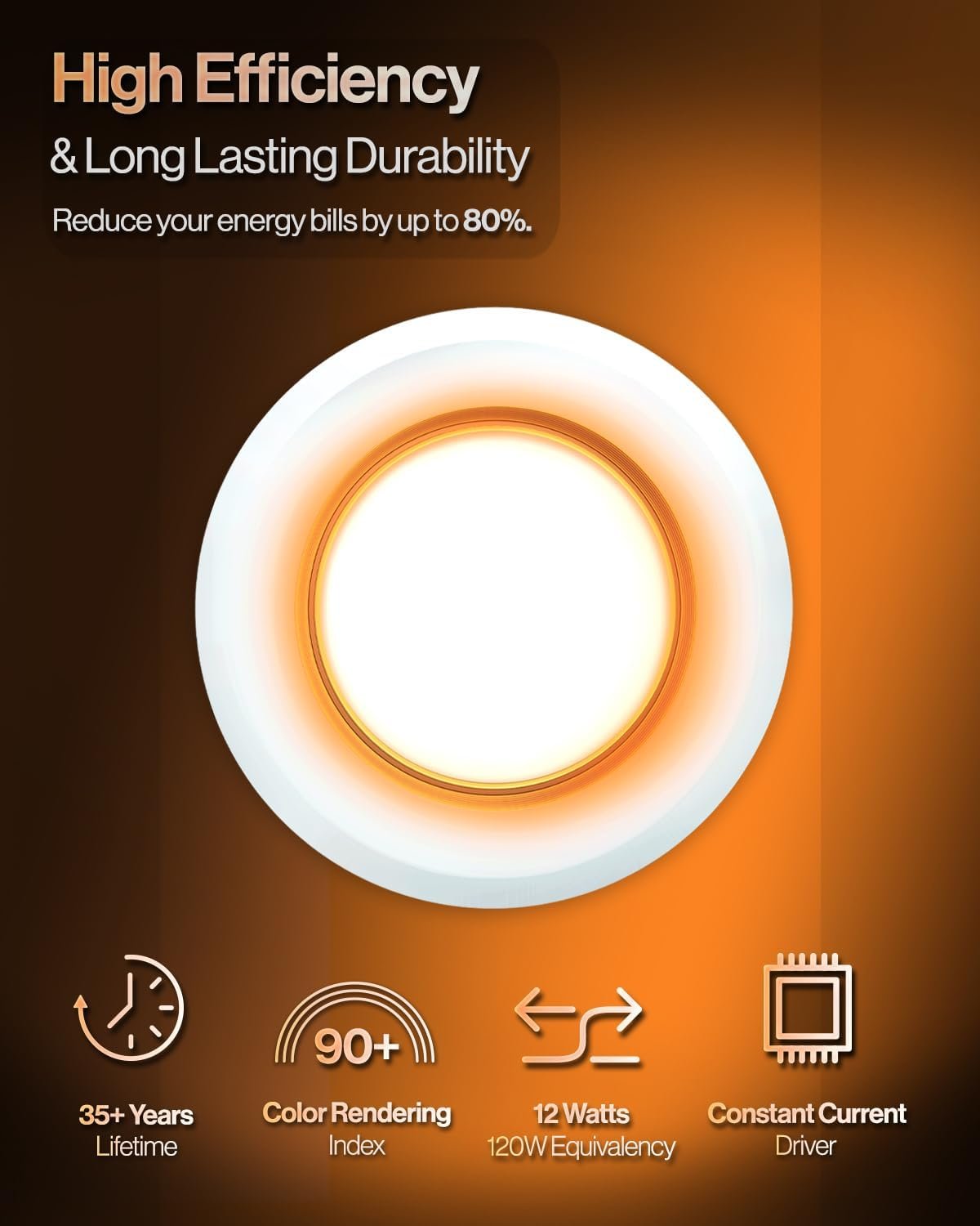 5-IN-1 CCT – Elevate the ambiance of any room with our downlight’s customizable color temperature feature. Simply use the slider switch to select from 5 options (2700K, 3000K, 4000K, 5000K, 6000K) and find the perfect fit for your space.