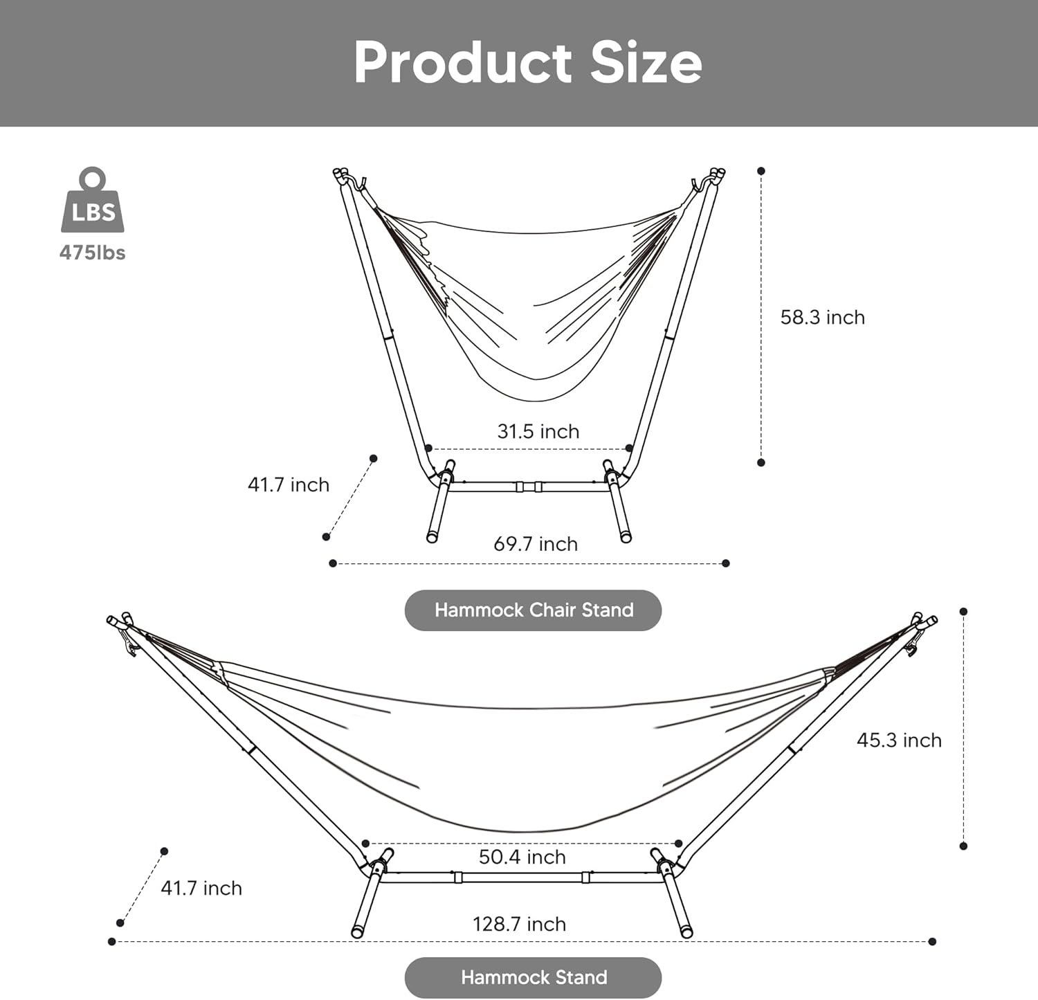 Heavy Duty Double Hammock (When Use with Hammock): The total length (from loop to loop) of the heavy duty hammock is 144 Inches while the bed size is 98” long X 59” wide, making it perfect for couples.