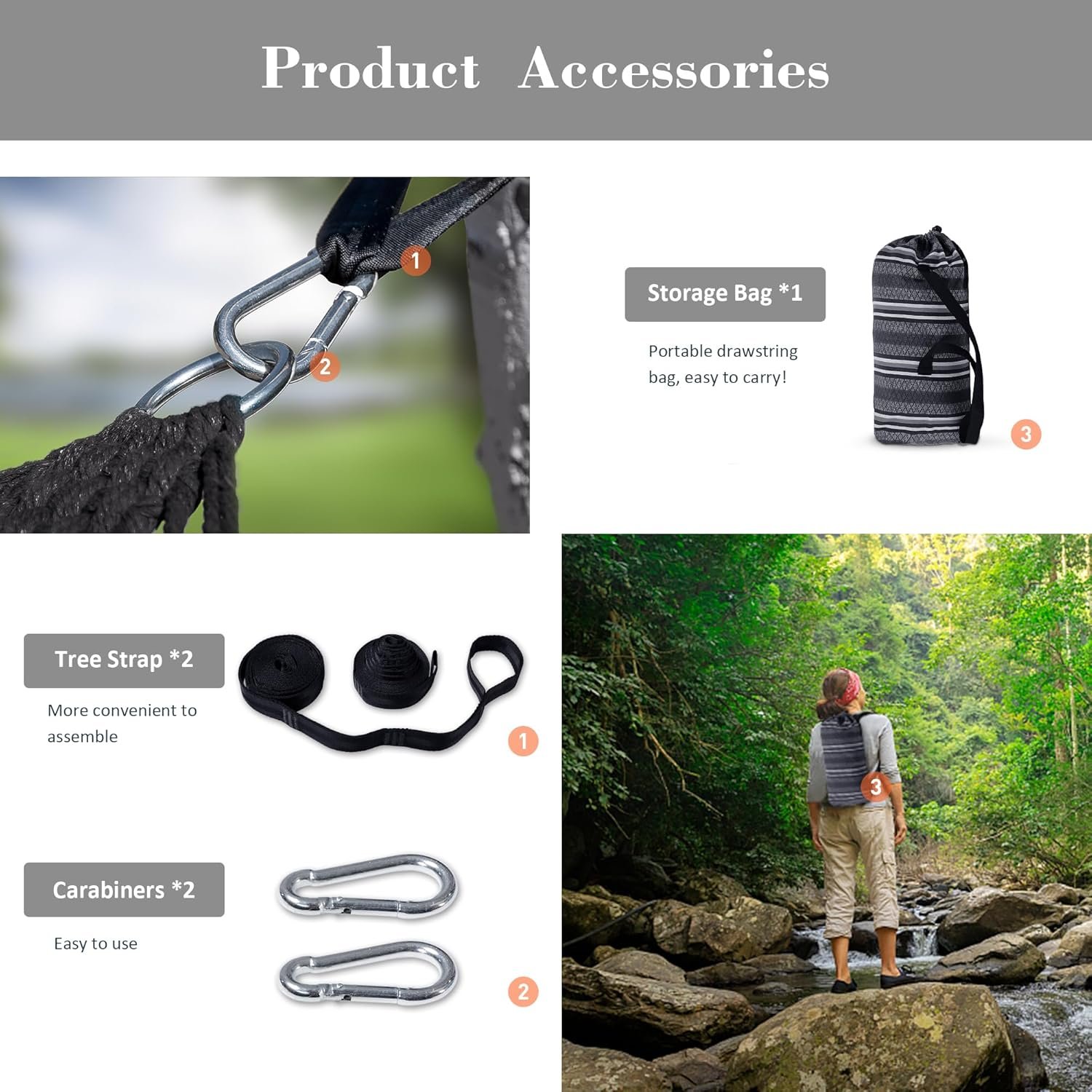 Portable & Easy to Use: The new splicing spreader bar could be knocked down within minutes, and it comes with a drawstring bag, which makes the outdoor hammock portable. The two person hammock will be more convenient to assemble thanks to its hanging kit (2 pcs of 9.84 feet tree straps and 2 pcs of carabiners). Enjoy the relaxing swing with your significant one at beachside, patio, backyard, balcony and more