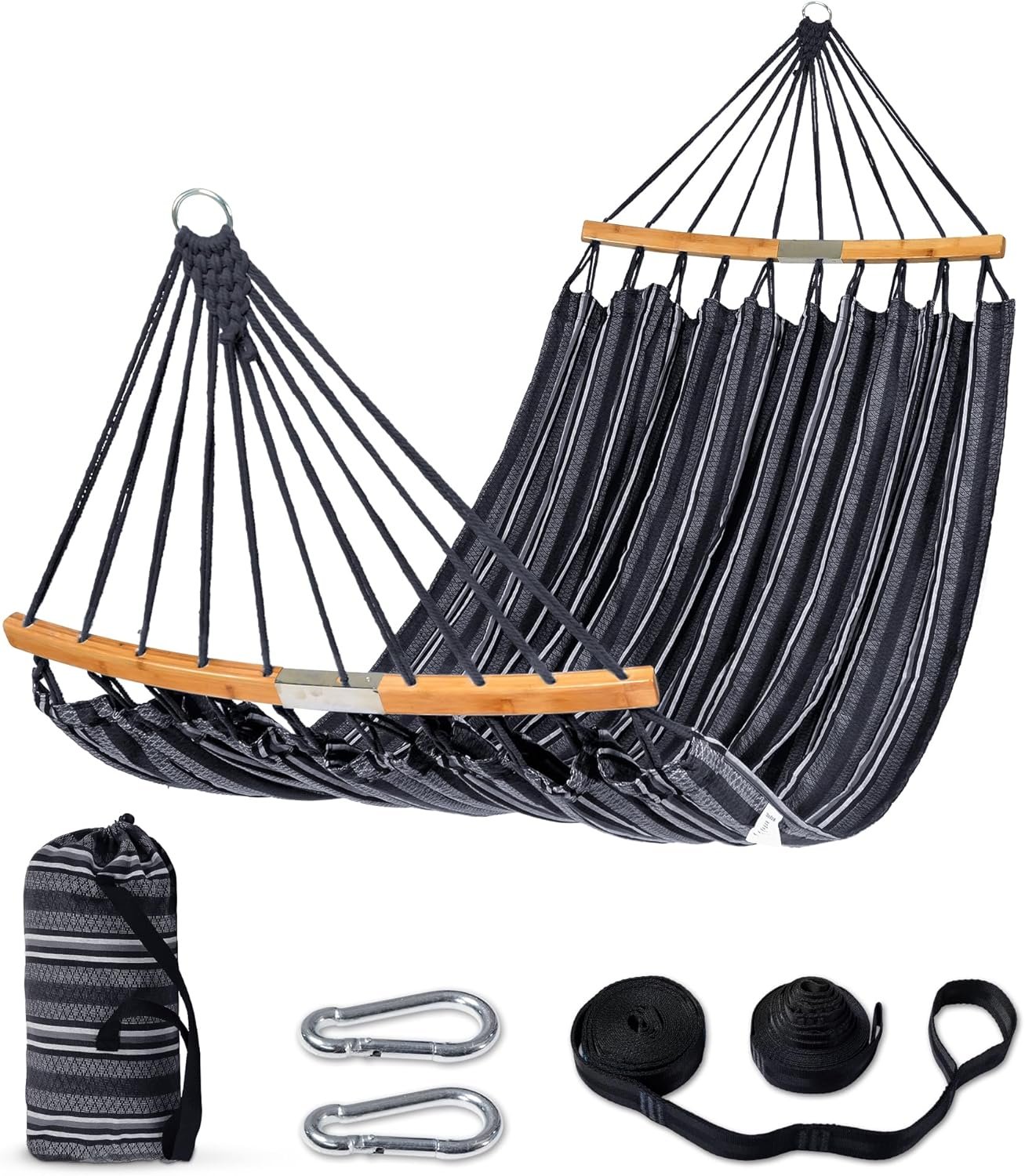 SUNCREAT Hammocks Double Hammock with Curved Spreader Bar, Outdoor Camping Portable Hammock with Carrying Bag & Tree Straps for Patio, Backyard, Balcony, Max 450lbs Capacity, Dark Gray