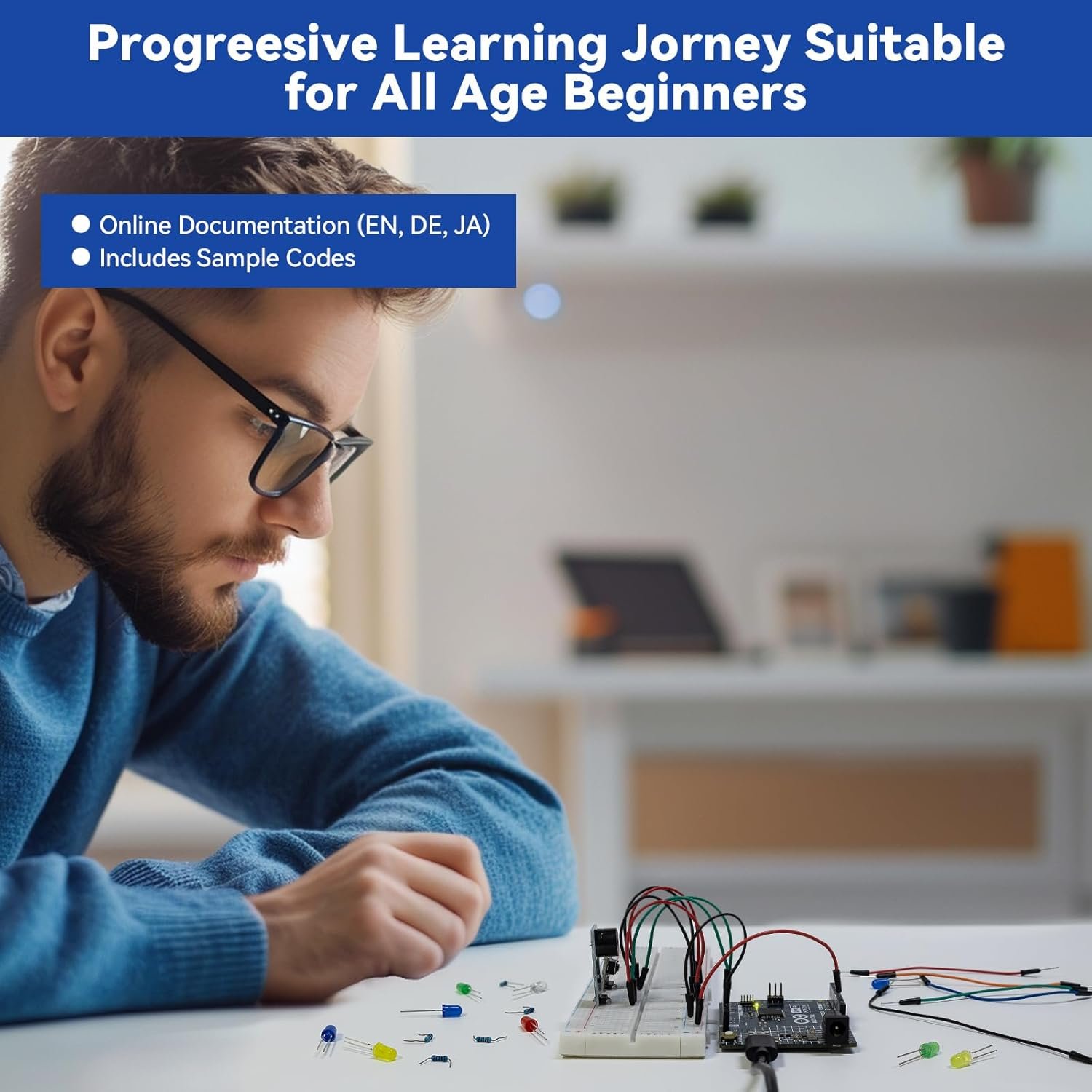 Engaging Projects for Every Skill Level: Featuring 50+ projects (30 basic, 17 IoT, 10 advanced fun), this kit supports IoT platforms like Blynk and IFTTT, enabling smart automation and real-world applications. With Arduino C++ programming, step-by-step guidance, and hands-on coding exercises, it’s perfect for students, teachers, and engineers to learn, build, and innovate at any level