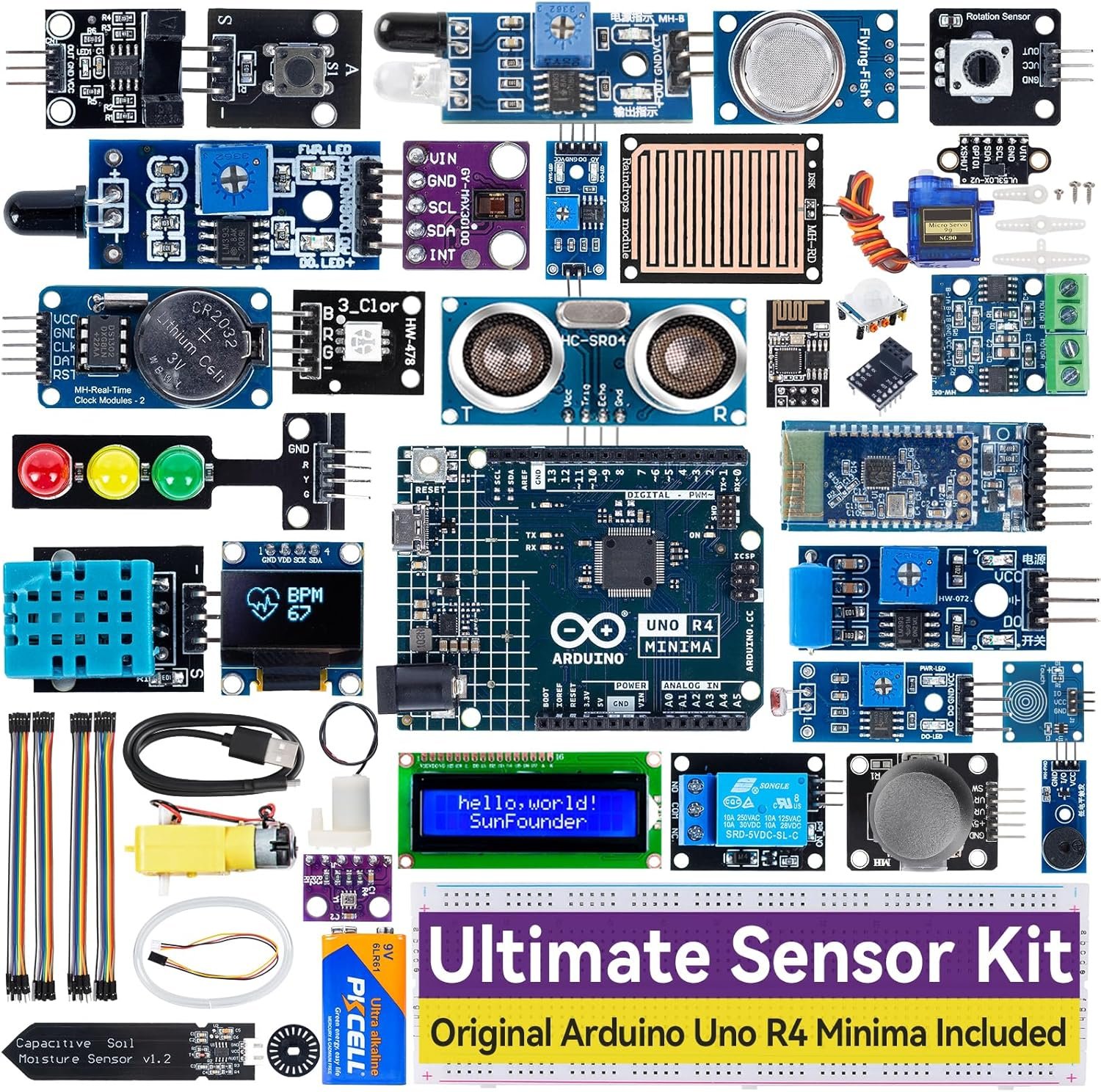 SunFounder Ultimate Sensor Kit with Original Arduino Uno R4 Minima, RoHS Compliant, Durable Sensors IoT ESP8266 IIC LCD1602 OLED, Online Tutorials & Video Courses for Beginners & Engineers