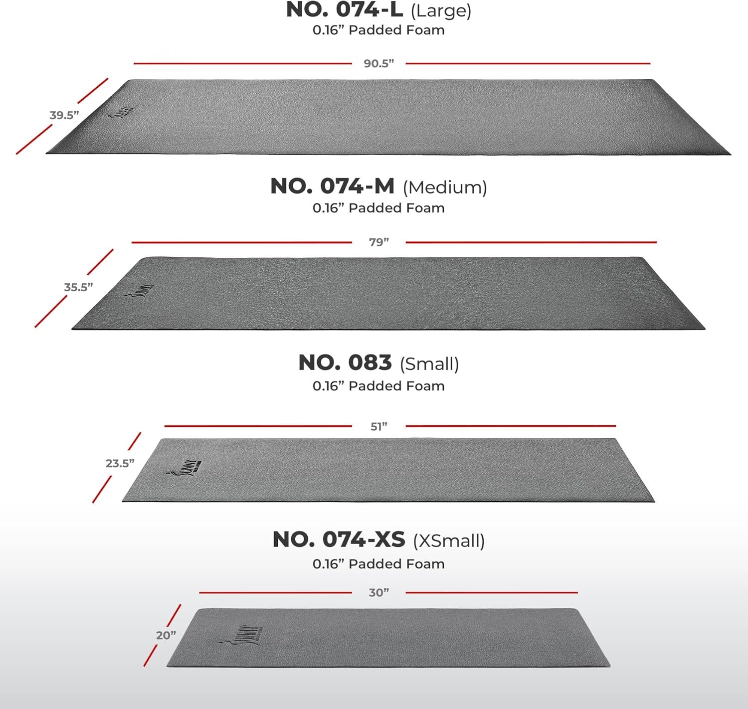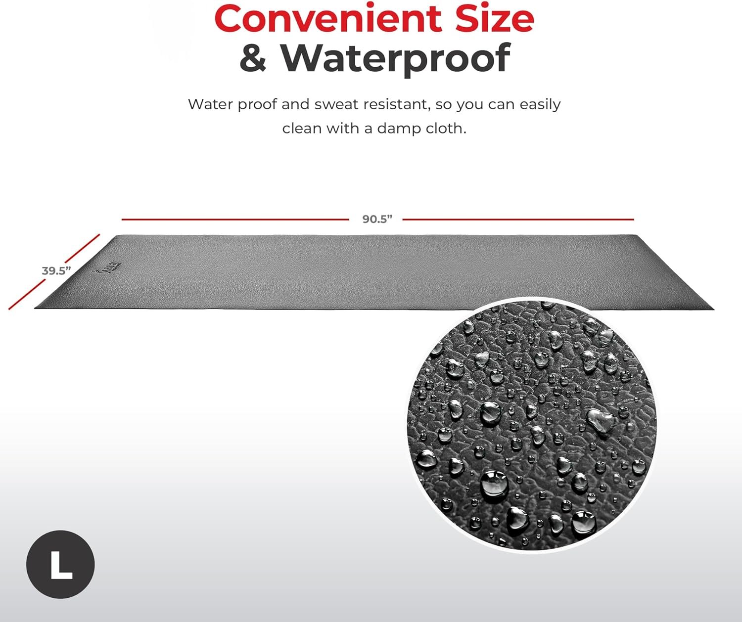 【VARIETY OF SIZES】 Our 4.2 mm thick mat comes in 4 sizes; easily fit any equipment of any size while keeping your room nice and tidy. EXTRA SMALL – 30 x 20 inches | SMALL – 51 x 23.5 inches | MEDIUM – 79 x 35.5 inches | LARGE – 90 x 39.5 inches.