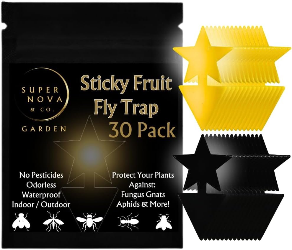 Super Nova & Co. 30pk Sticky Fruit Fly Traps Star-Shaped Indoor Plants Outdoor Garden Double-Sided Adhesive Flying Gnat Insect Pest Management Catcher Non Toxic Odorless Waterproof UV-Resistant 3×5”