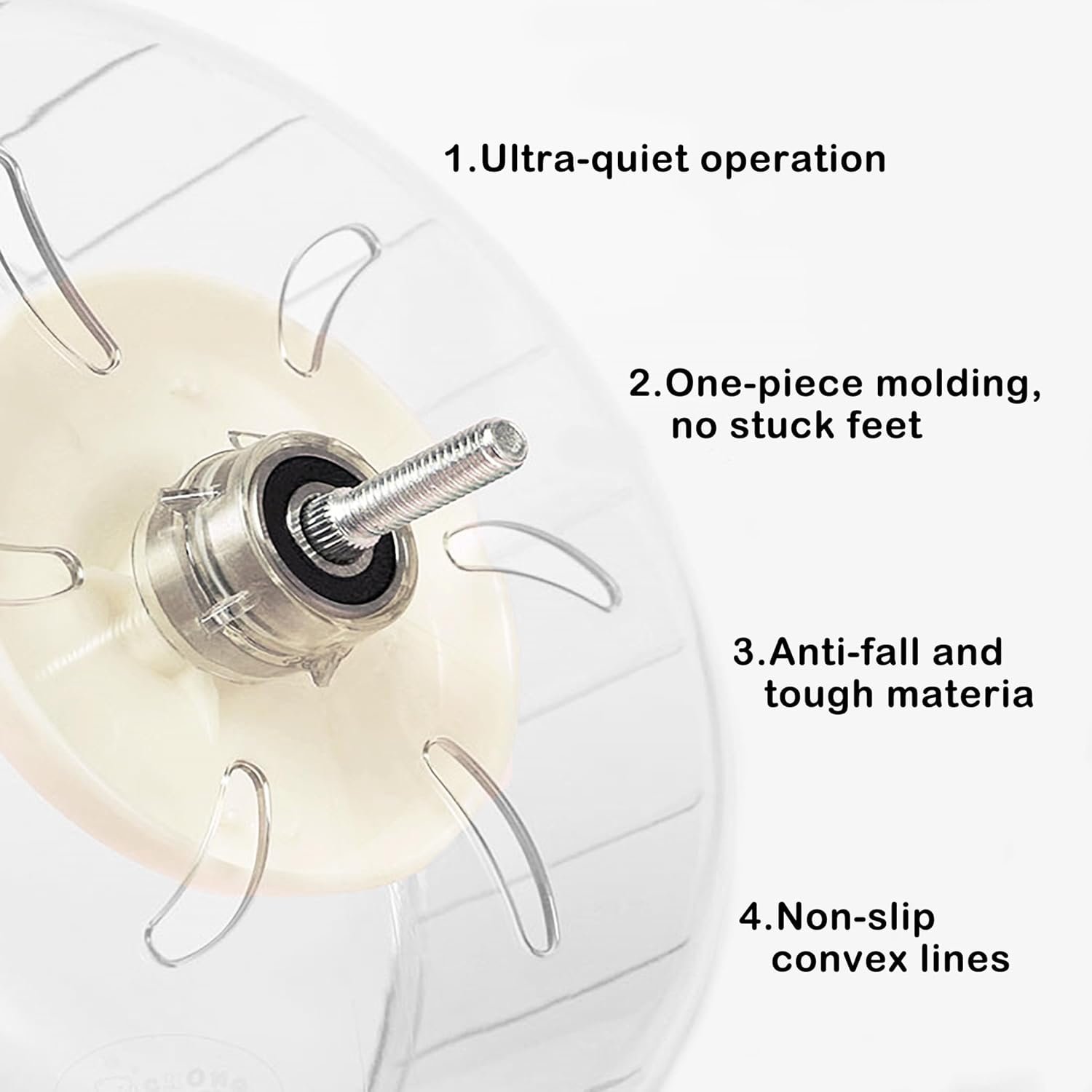 Perfect Design: Reasonable Size of Running Drum & Wide Running track let you pet do not need to bend their back when running. The small wheel shows Transparent design, visually spacious and bright, it’s easy to lets you watch your pet playing inside. The edge of the cylinder is smooth that won’t hurt the pet’s feet. Non-slip convex lines enlarge friction and enhance stability to avoid false step, One-piece molding design, easy to keep clean, just wipe with wet wipes.