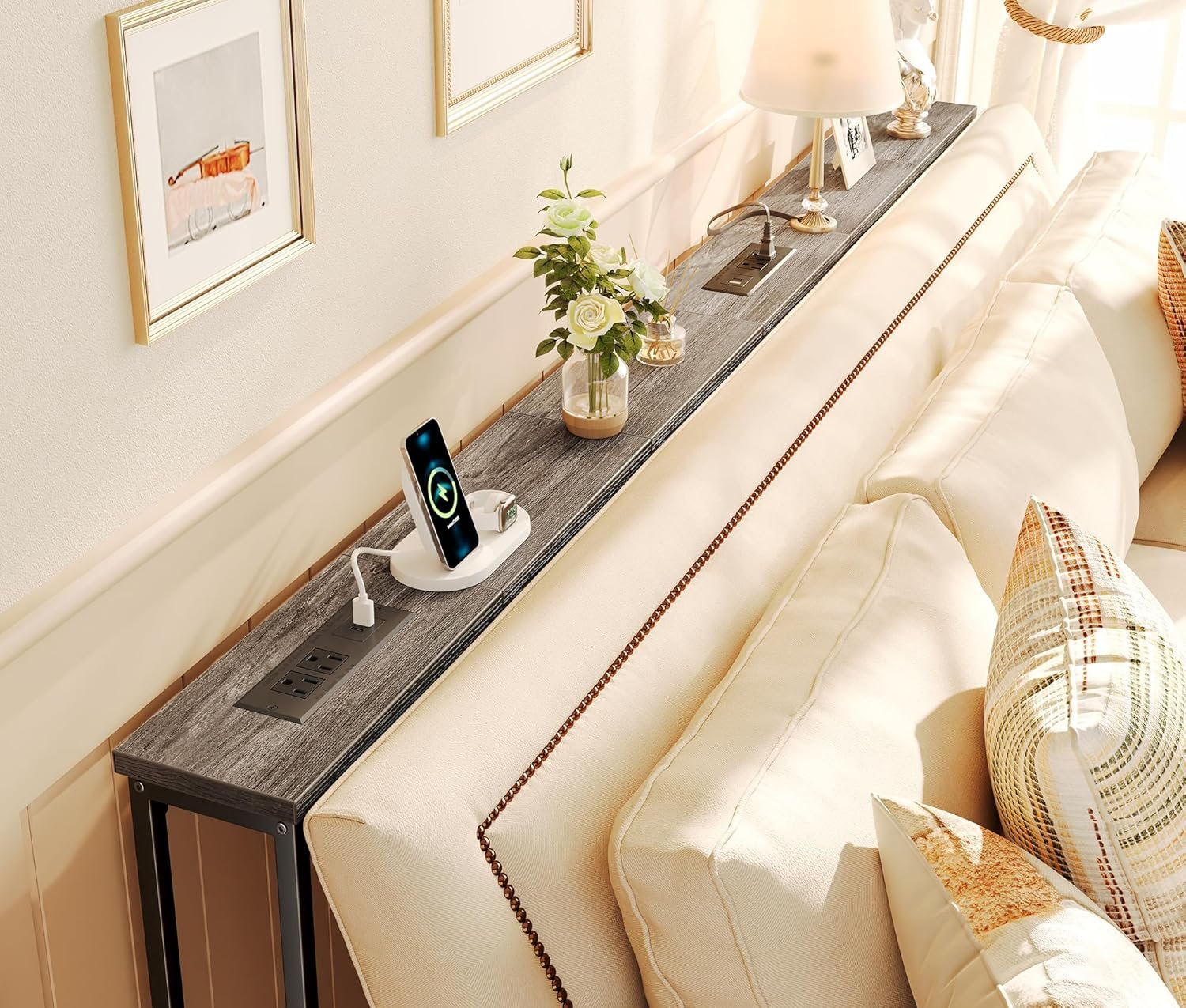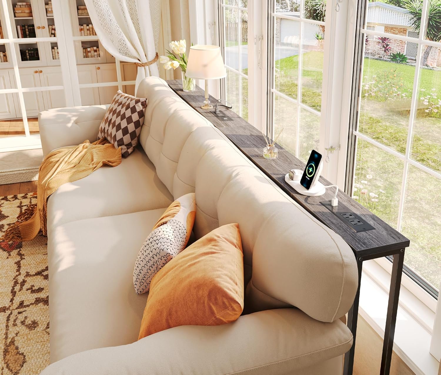 【Flexible Charging Stations】Whether you’re lounging solo or hosting a gathering, this thin console table offers multiple charging options right behind your sofa. With 2 AC outlets, 1 USB port, and 1 Type-C port, you’ll always have easy access to power. Plus, when you combine 2 tables behind couch, you can position the charging station on the side or in the middle, making it even more convenient
