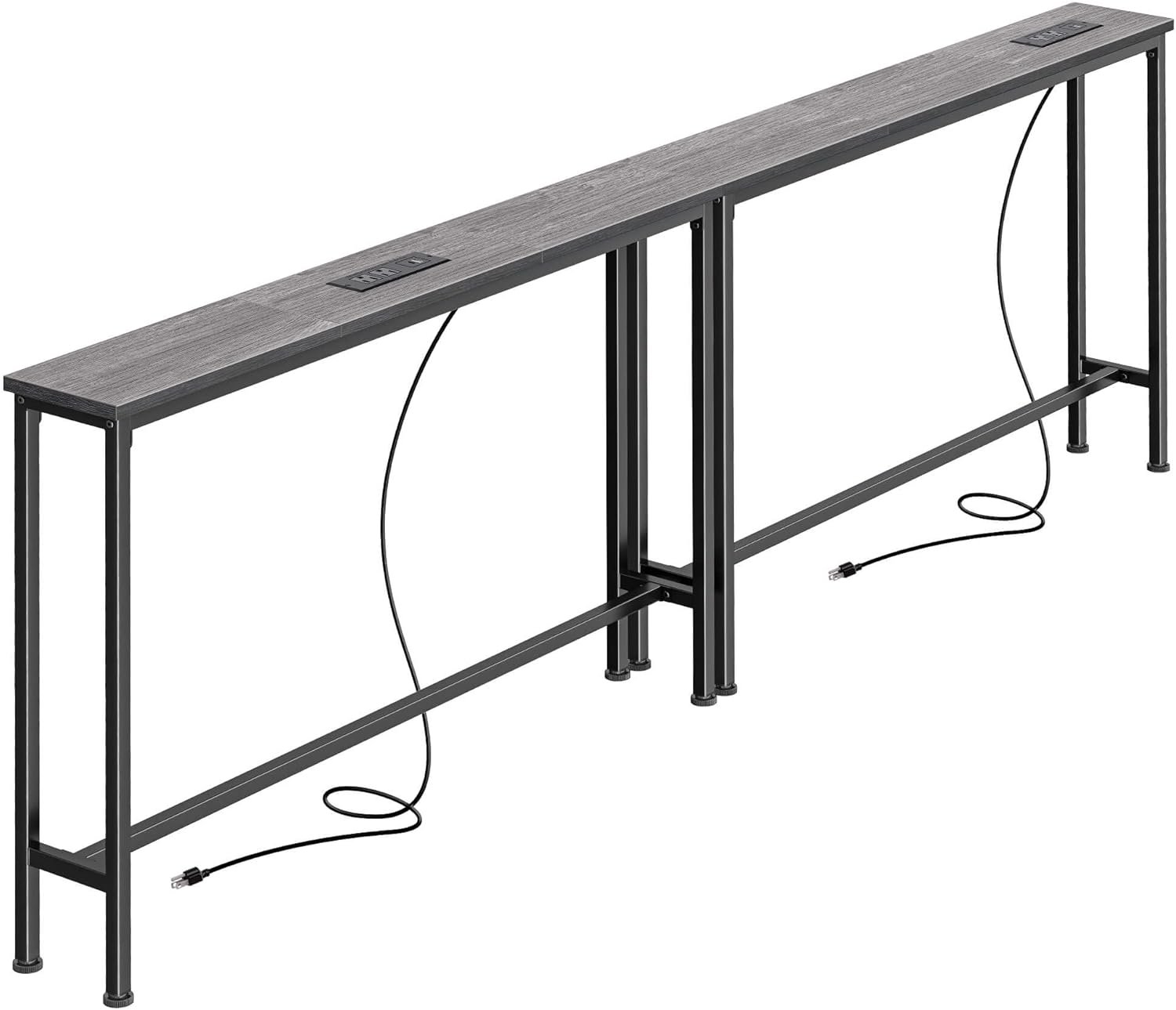SUPERJARE 78.8 Inch Narrow Console Table with Outlet, Sofa Tables, Behind Couch Table, Long Entryway Tables with Charging Station, for Living Room, Charcoal Gray