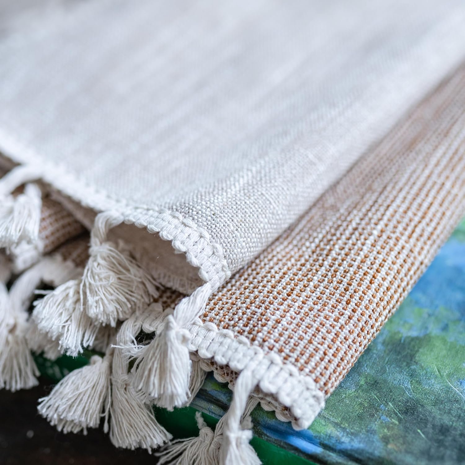 【Bohemian Chic Style】Featuring chic stitching classical striped pattern embroideried on the fabric, both sides and bottom sewed with handmade tassels. It add elegant stylish and decorative elements to your rooms.