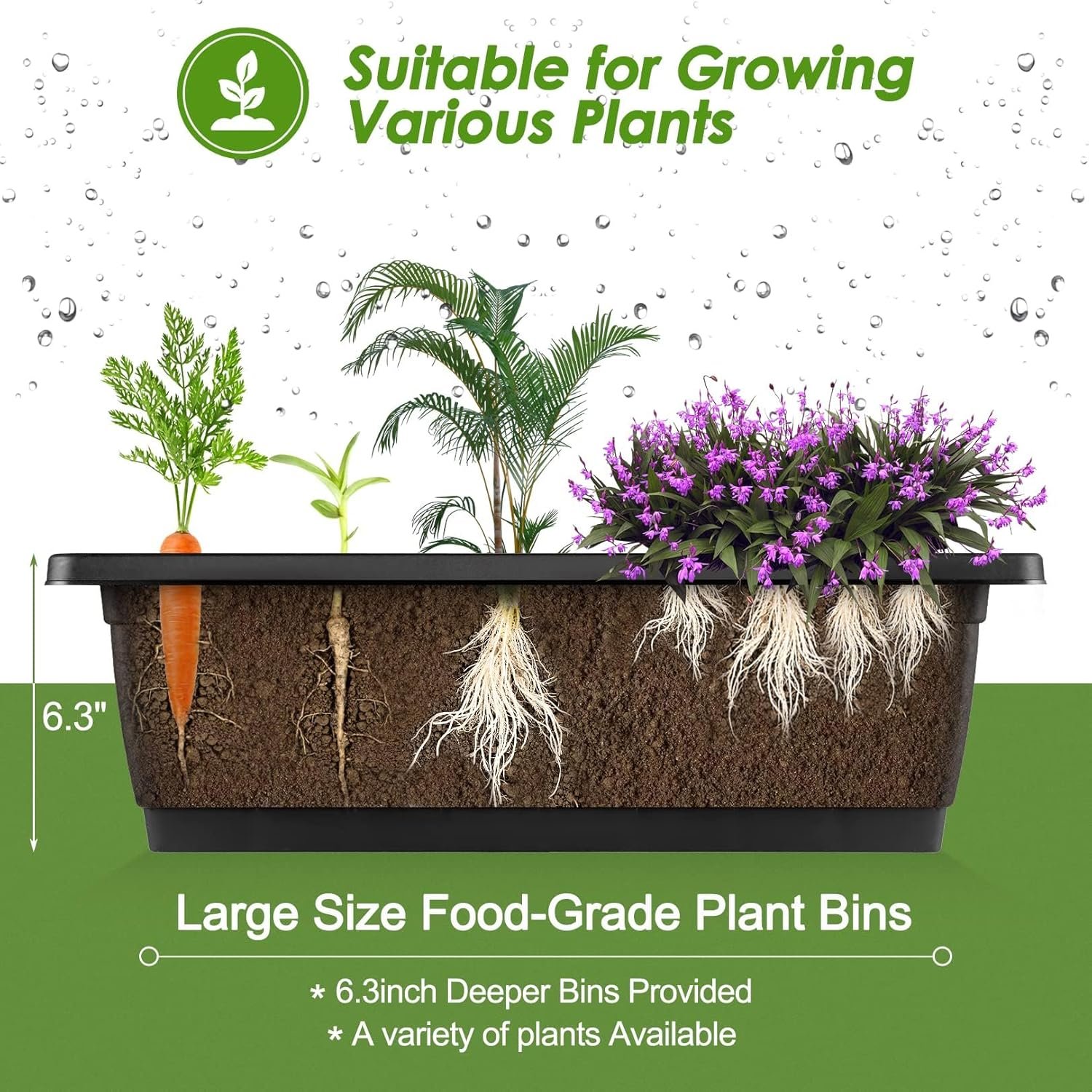 【Upgraded Drain Hole Design & Stable Triangular and Reinforced Design】 The 5 tiers vertical garden bed’s each bottom has three drainage holes, which can prevent plants from rot or over-drying.This 4FT vertical raised garden planter features a stable triangular design, which ensures greater stability and minimizes the risk of damage when placed on the ground. Additionally, we have incorporated a reinforced design at the bottom of this raised flower pot, further enhancing its stability and ensuring safer usage.