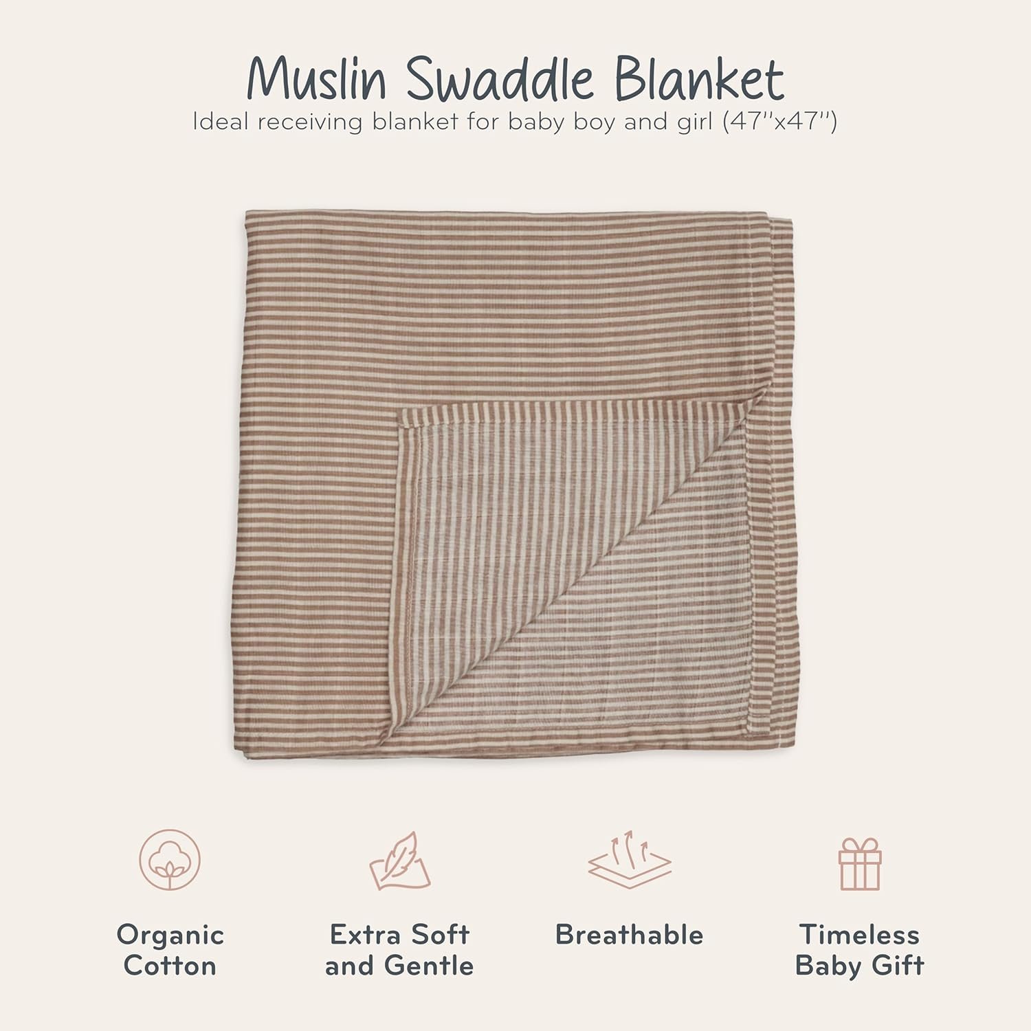 Swaddle – 100% Organic Cotton – Muslin Swaddle Blankets for Newborn, 47″ x 47″ (Natural Stripe)