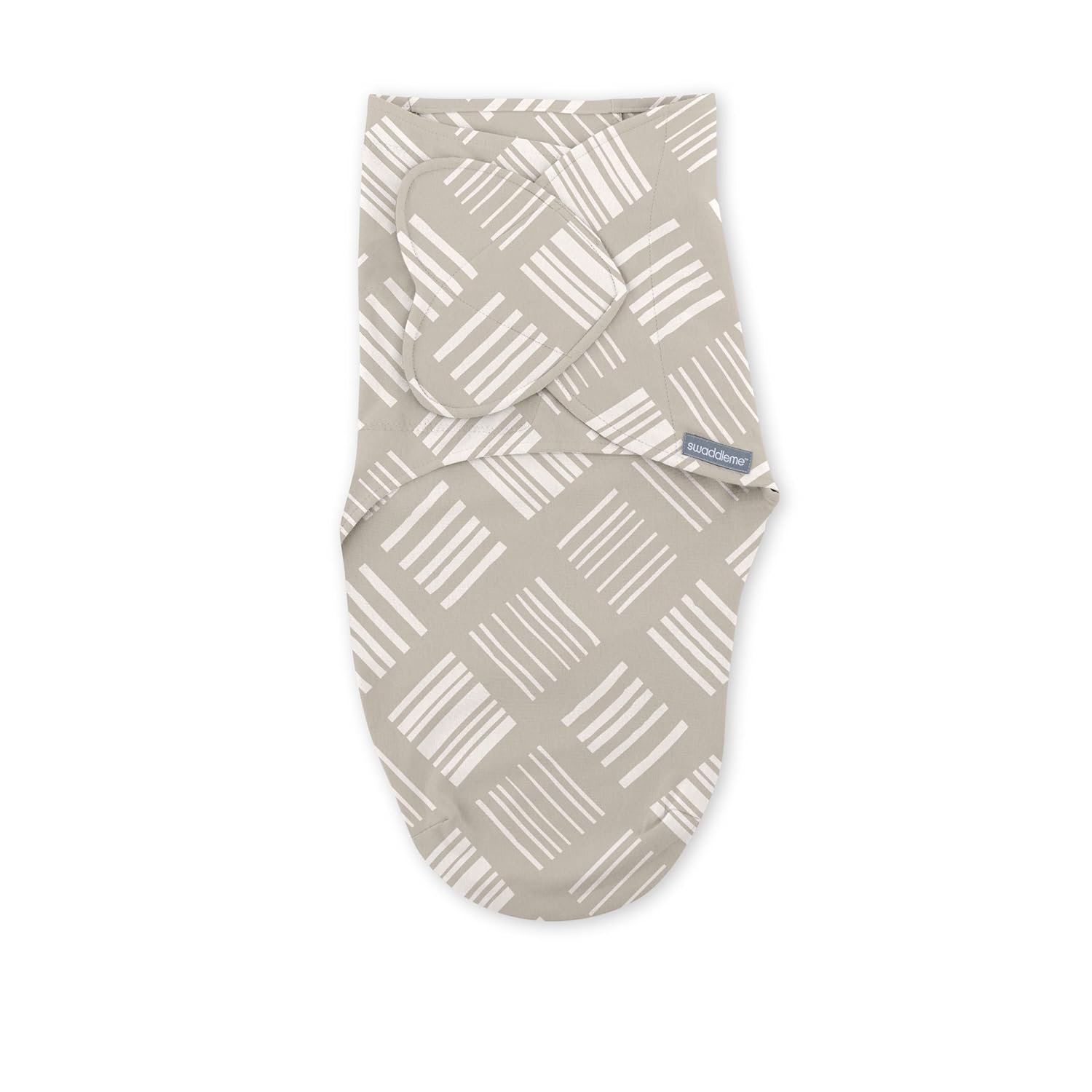 This swaddle is part of Stage 1 in the SwaddleMe Stages of Healthy Sleep, made for newborns who aren’t rolling over yet and like to be swaddled with their arms in