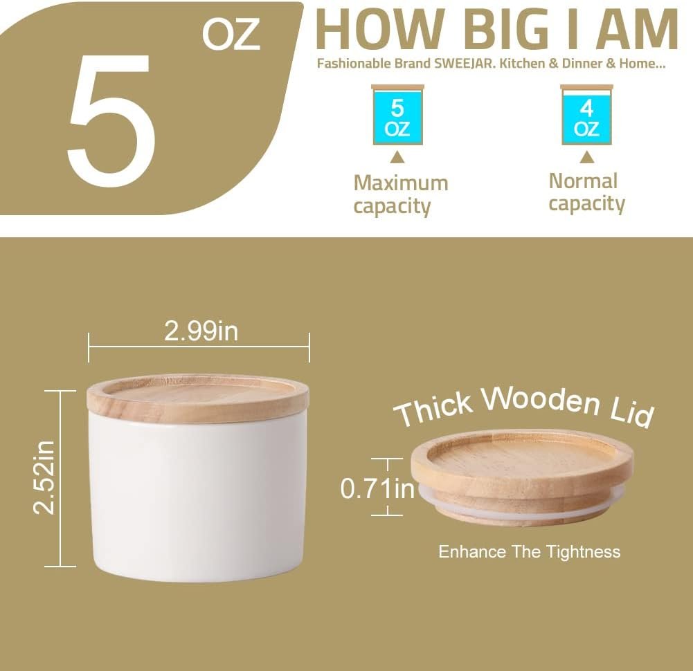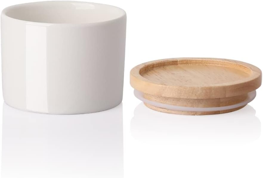 Sweejar 5 Oz Ceramic Salt Cellar with Lid, Stackable Spice Jars for Sugar, Flours, Candies, Liquid Seasonings, Modern Storage Container Coffee Keeper(White)