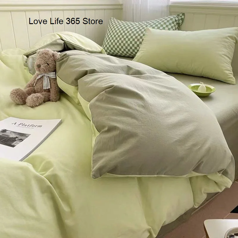Sweet Blue Love Heart Printed Bedding Set For Girls Adults Children Bed Cover And Flat Sheet Pillowcases Soft Full Size 3/4pcs