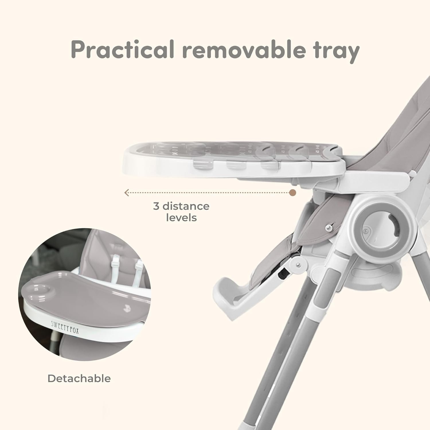 Sweety Fox Baby High Chair Adjustable to 7 Different Heights – Grey Baby Chair – Silla para Comer de Bebe – Foldable High Chairs for Babies and Toddlers