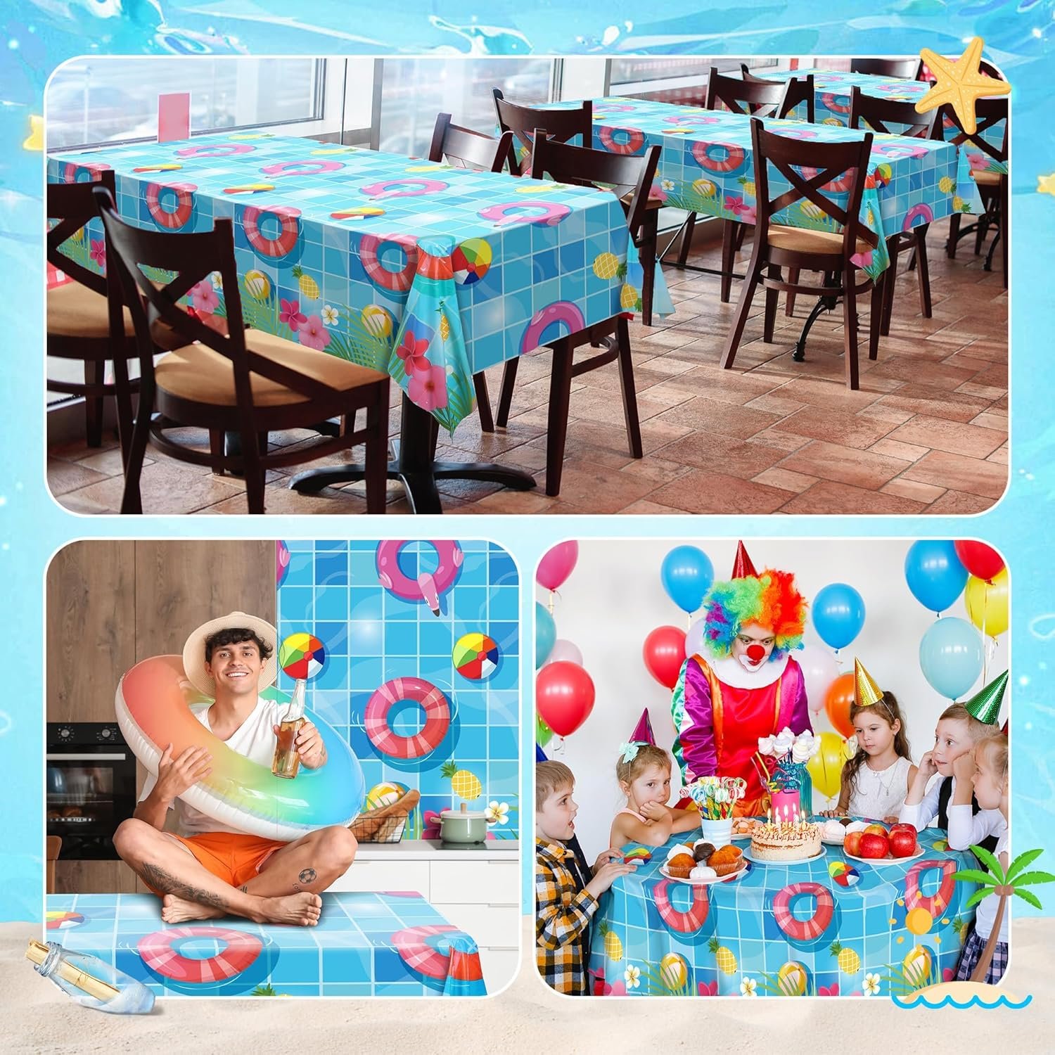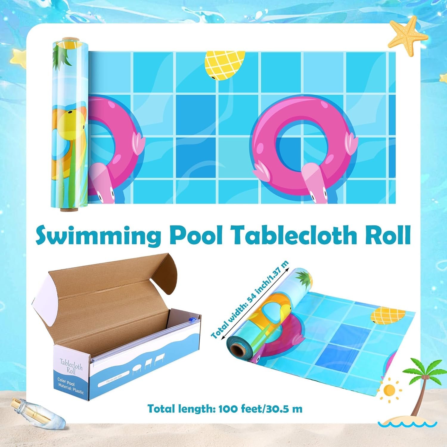 Decorative Versatility: this swimming pool tablecloth roll adds a splash of fun to any summer occasion, ideal for summer and pool parties, under-the-sea decorations, pirate parties, underwater or mermaid birthdays, fishing-themed celebrations, beach gatherings, etc., elevating your party atmosphere and create unforgettable memories for friends and guests