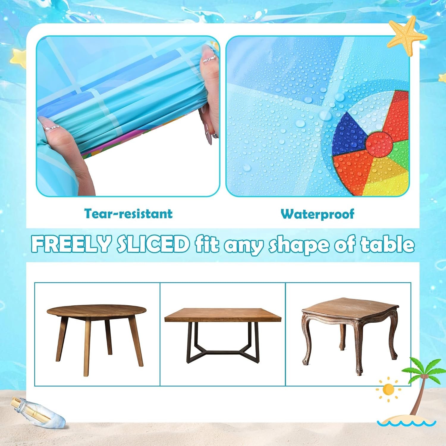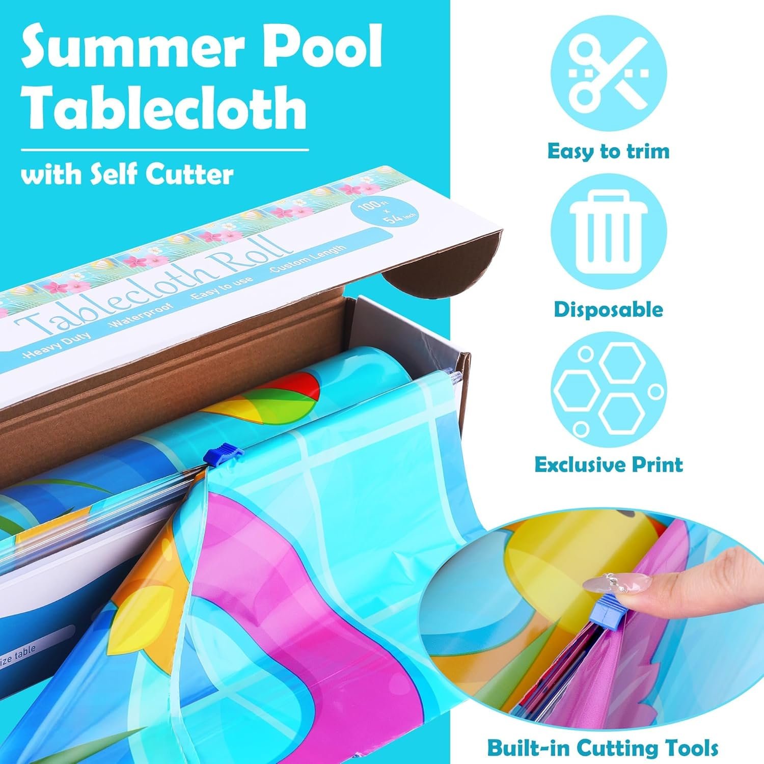 Built-in Cutting Tools: just roll out this summer swimming pool tablecloth roll to shield your tables from spills, stains, and scratches, the ocean tablecloth roll doubles as a vibrant wall decoration; convenient built-in cutting tools are included in the box, easily customize the tablecloth length to fit your needs