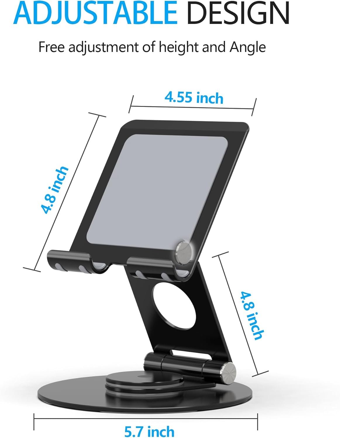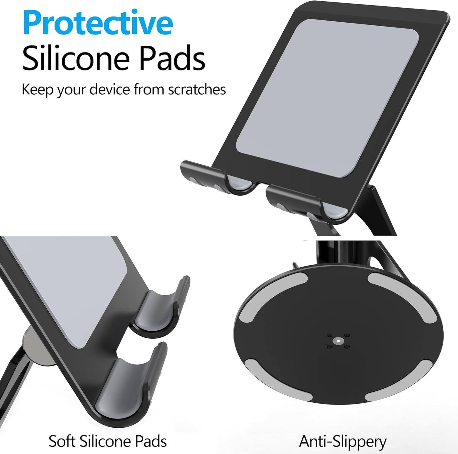 Swivel Tablet Stand, Aluminum Portable 360°Rotating Adjustable Tablet Holder for All 4-12.9’’ iPad Surface Samsung Phone Tablet Kindle E-Reader and More(Black)