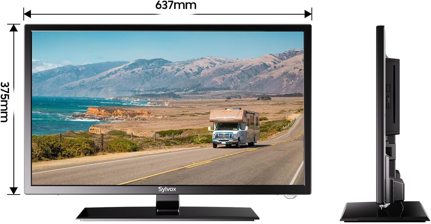 SYLVOX RV TV, 27-Inch 12 Volt Television, Smart Google TV, Full HD 1080P, DVD Built-in, 178° Wide Viewing, HDMI & USB Ports, AC/DC, Wide Voltage Protection, Trailer Seies