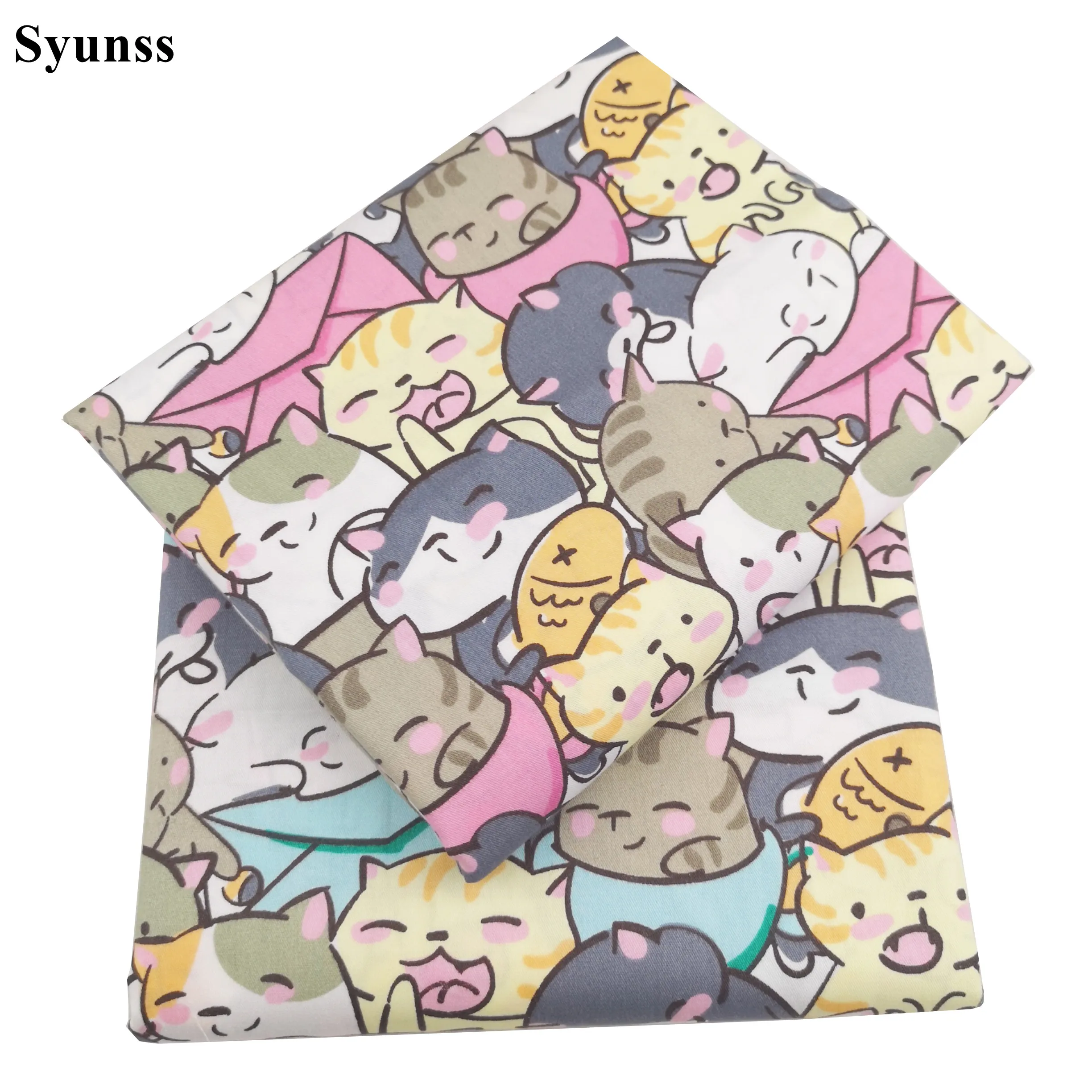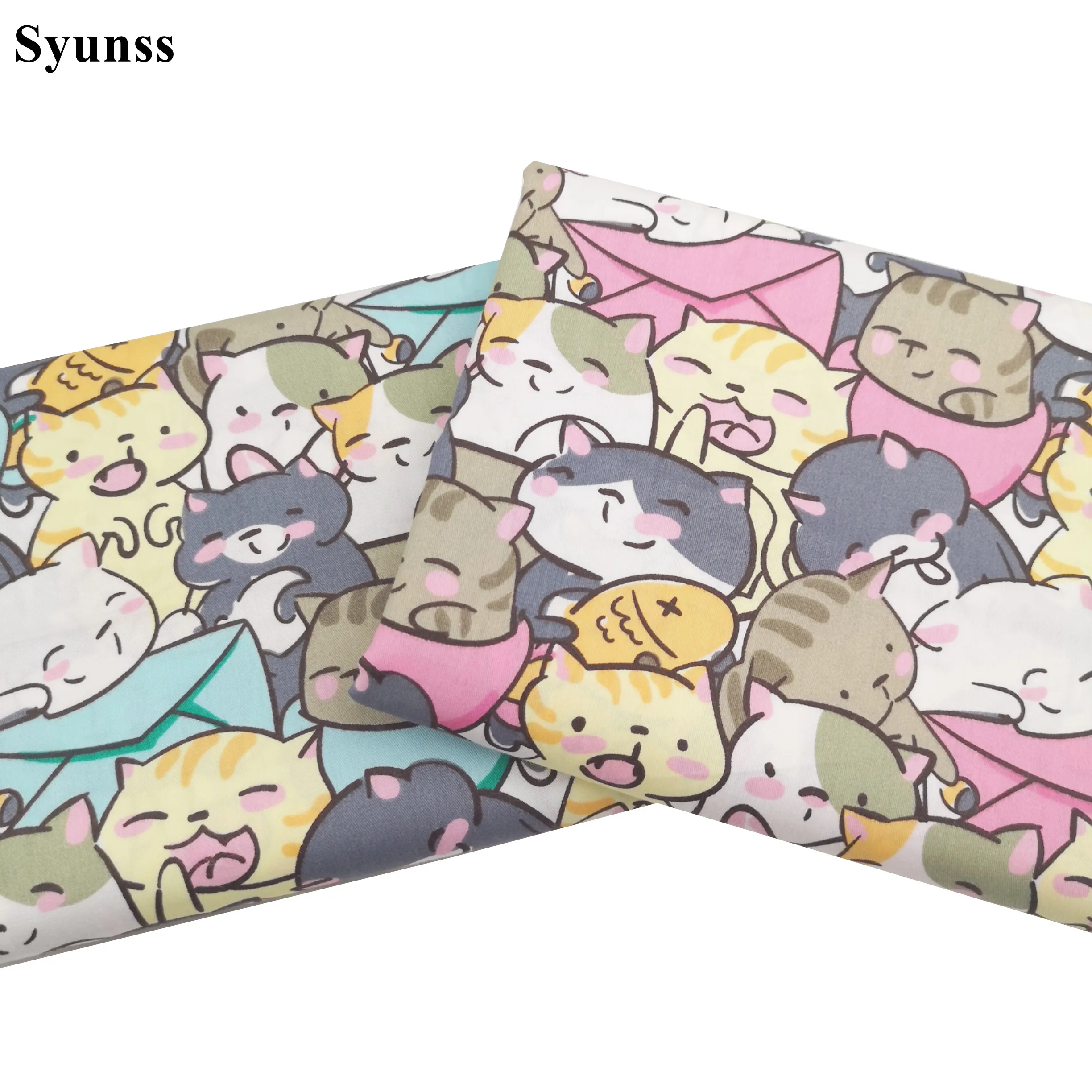 Syunss-Cute Cat Envelope Print Cotton Fabric, DIY Patchwork Quilting, Baby Cribs, Cloth Cushions, Blanket Sewing, New