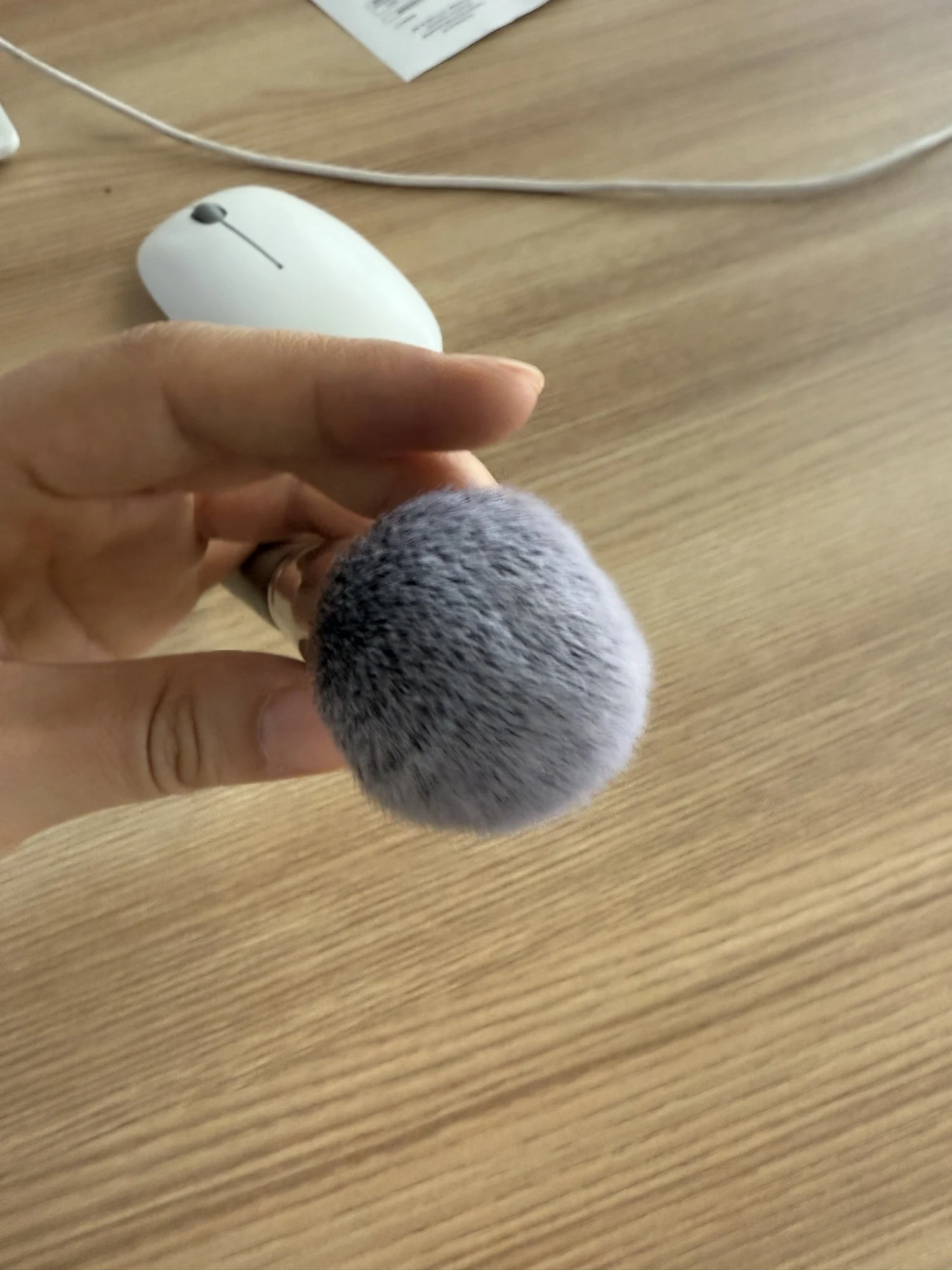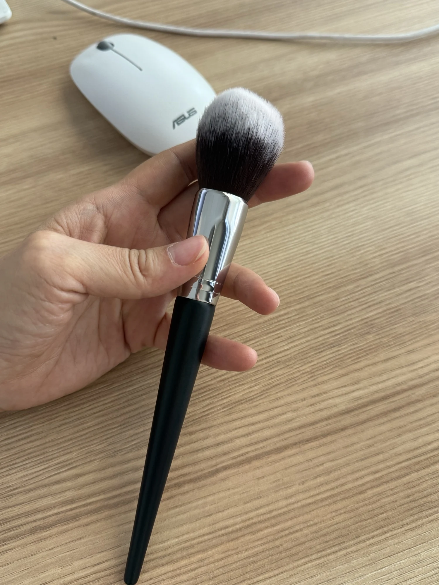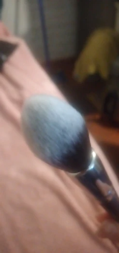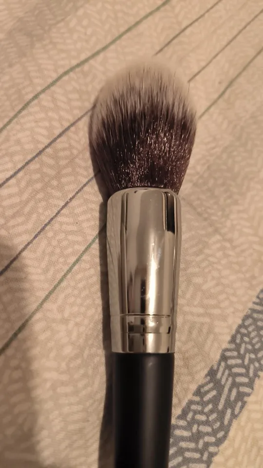 I really like the brush. The passed one arrived broken, but this one is of good quality. The brush is soft and has long bristles. The handle seems to be wooden, the fabric is not heavy.