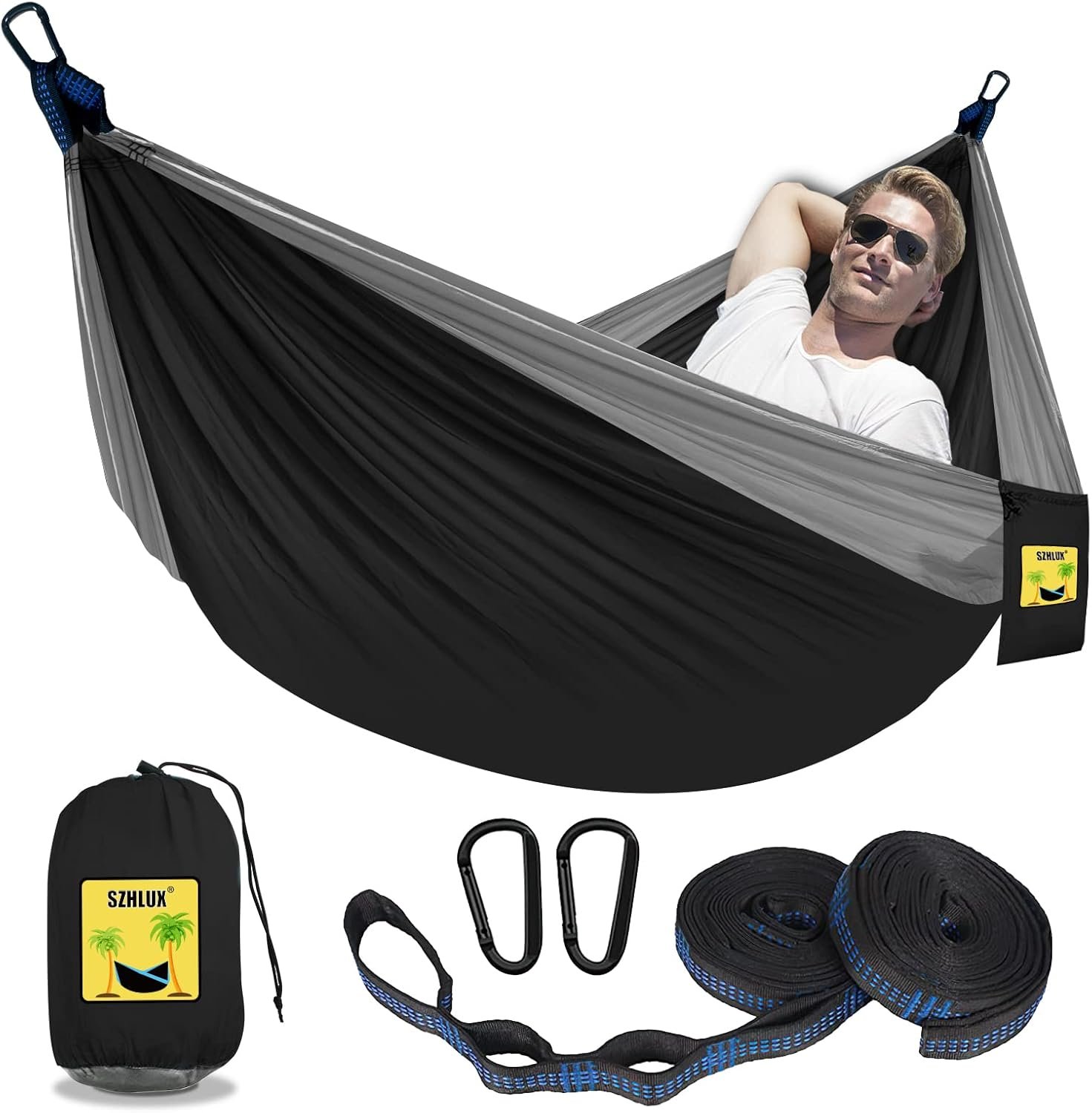 SZHLUX Camping Hammock Double Portable Hammocks Camping Accessories and Camping Gear,Great for Hiking,Outdoor,Beach,Camping