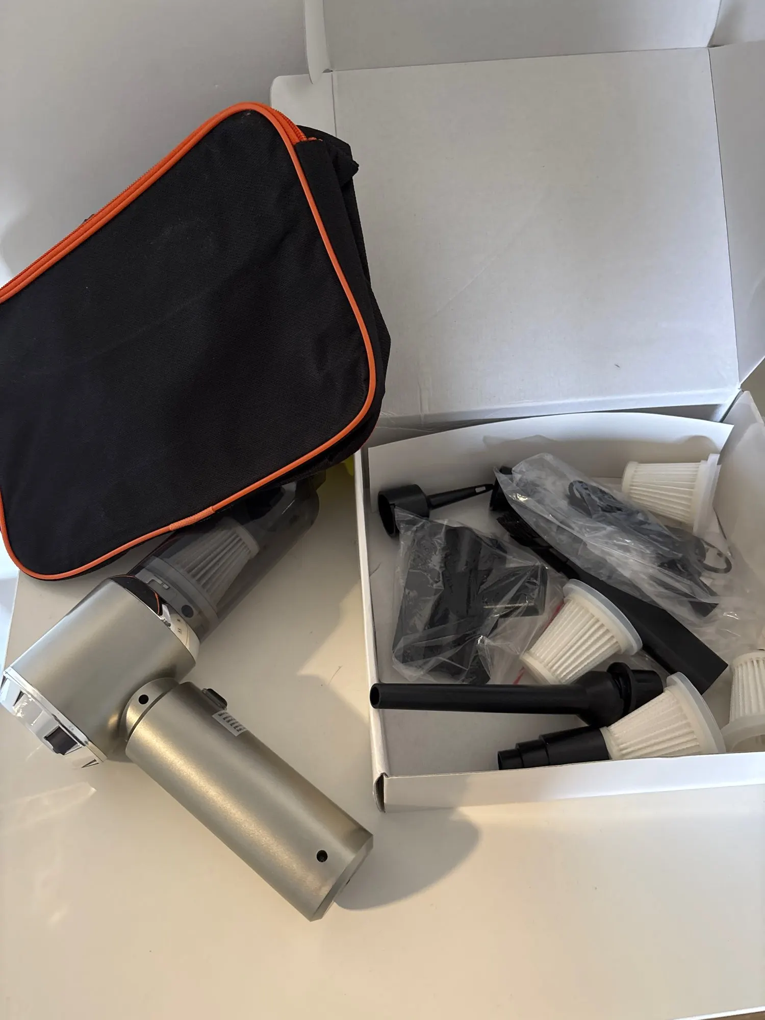 Everything arrived well. The box is wrinkled, but it’s a pity. Everything is whole. Everything works) the vacuum cleaner is not bad for its sizes, and it also blinks) I’ll try it on the car one of these days 😉 I don’t know how long it will hold a charge, maybe I’ll add to the review later.