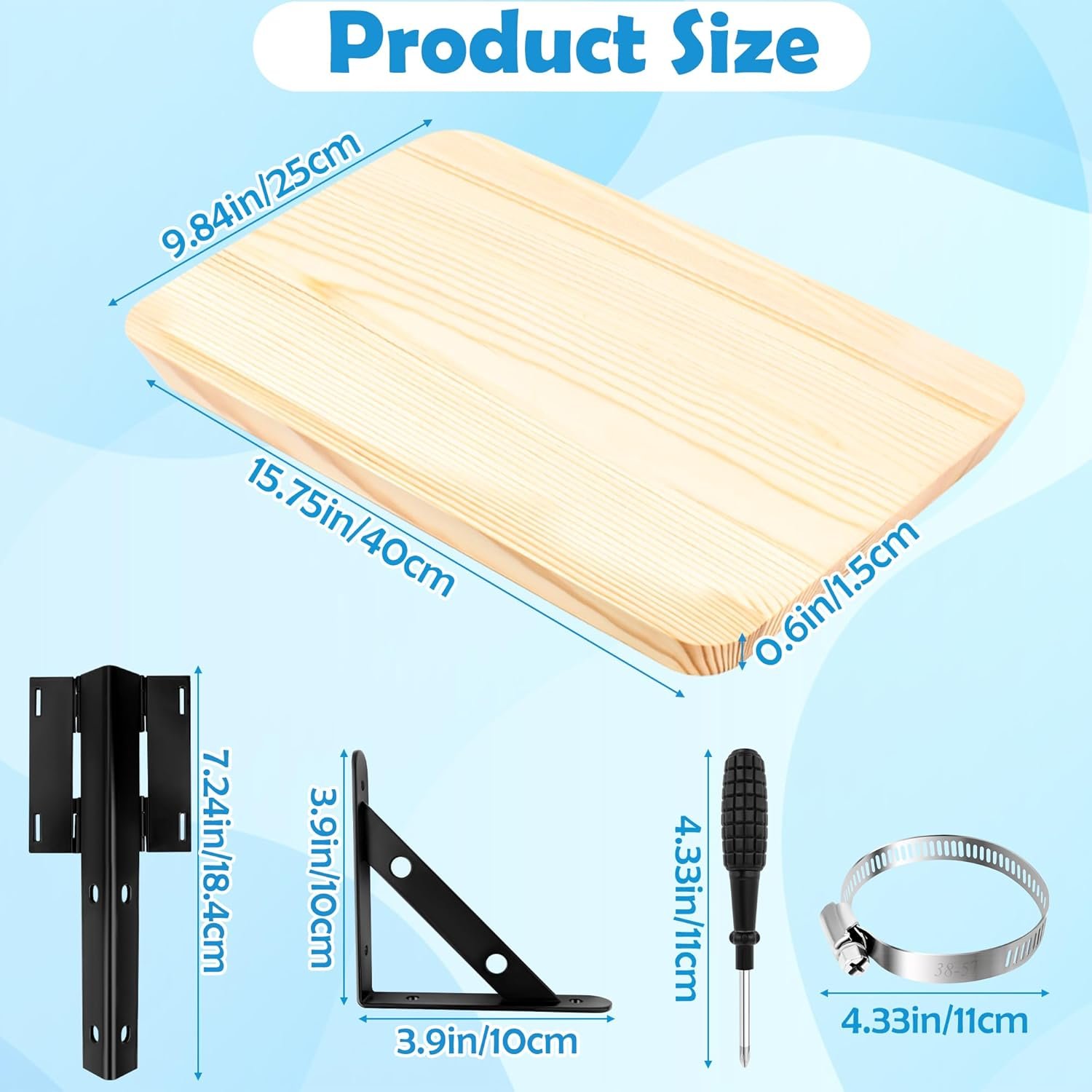 【𝐒𝐭𝐚𝐛𝐥𝐞 𝐌𝐨𝐮𝐧𝐭𝐢𝐧𝐠 𝐰𝐢𝐭𝐡 𝐌𝐮𝐥𝐭𝐢-𝐅𝐮𝐧𝐜𝐭𝐢𝐨𝐧𝐚𝐥 𝐁𝐫𝐚𝐜𝐤𝐞𝐭𝐬】The pool side table comes with heavy-duty metal mounting brackets, L-shaped supports, screws, hose clamps, and even a screwdriver. Designed to fit most round or square frame pools, it installs securely so you won’t have to worry about slipping or tipping.