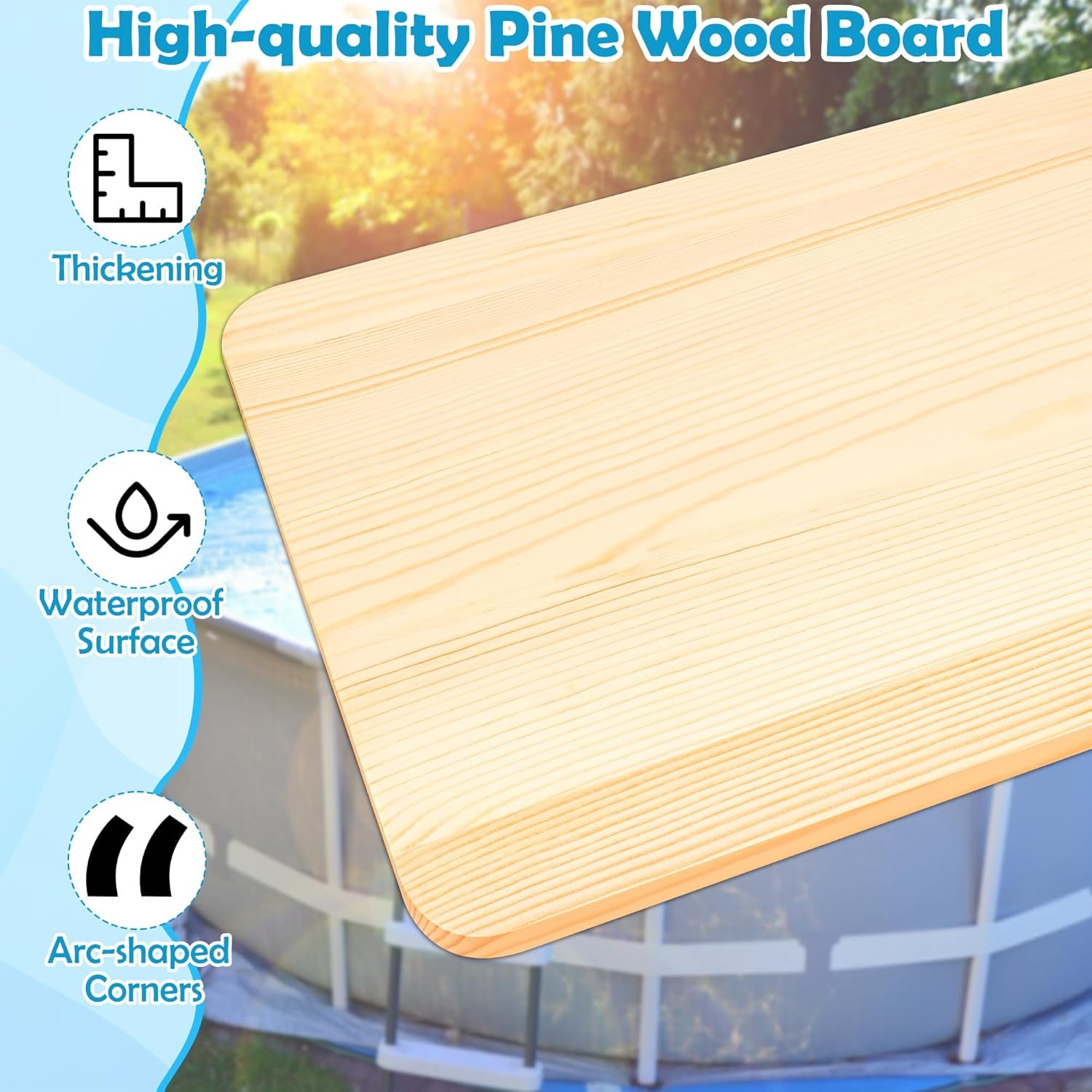 【𝐃𝐮𝐫𝐚𝐛𝐥𝐞 𝐒𝐨𝐥𝐢𝐝 𝐏𝐢𝐧𝐞 𝐖𝐨𝐨𝐝】This pool bar for above ground pool is crafted from high-quality solid pine, featuring a smooth, attractive surface that’s both sturdy and durable. It easily holds drinks, snacks, phones, and more—letting you relax by the pool and fully enjoy those carefree summer days.