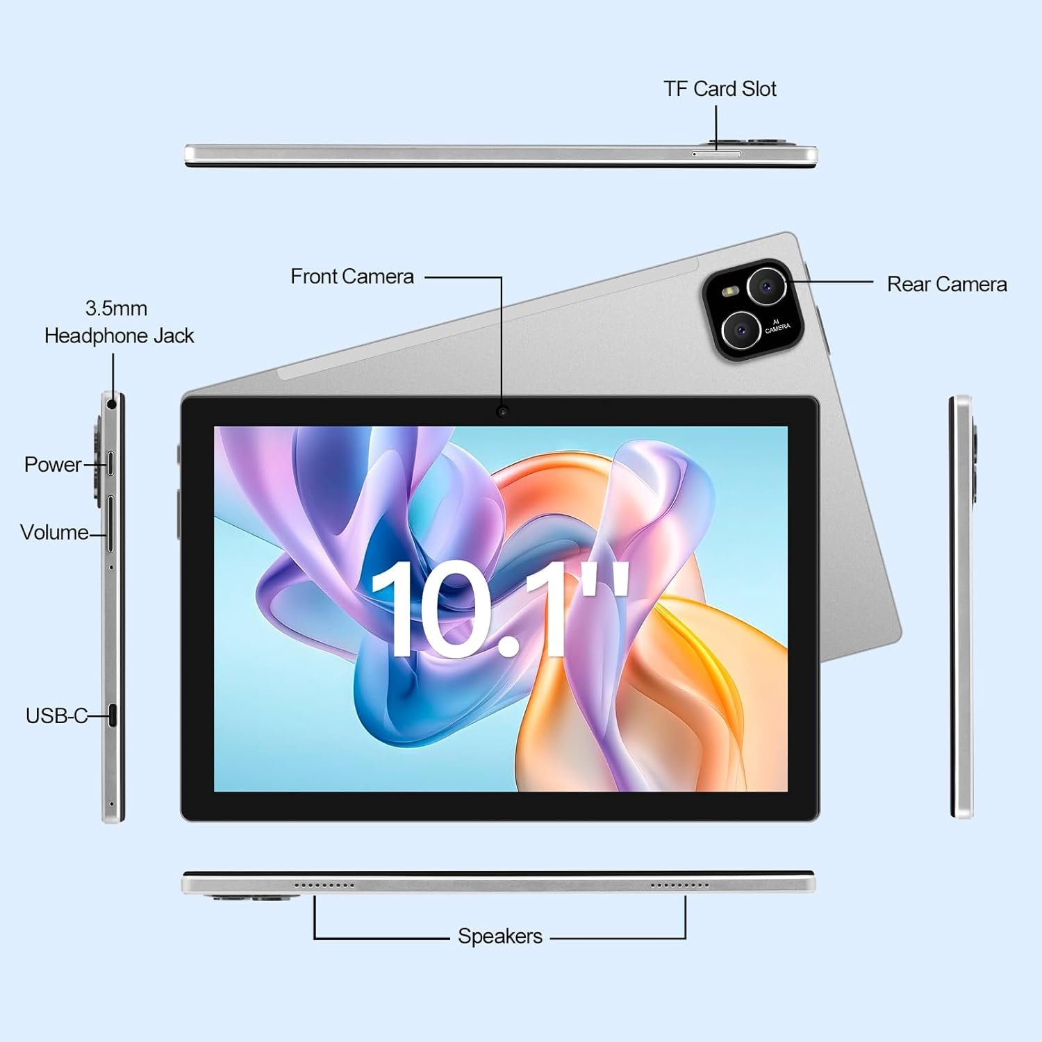 VIBRANT VISUALS + DUAL CAMERAS: Immerse yourself in a vivid 10.1-inch IPS touchscreen with 1280×800 HD clarity—featuring wide viewing angles and vibrant colors ideal for movies, e-books, and browsing. This 10 inch tablet features dual cameras (front + rear) that capture life’s moments in sharp detail, from video calls to sunset snapshots. Engineered for visual storytellers and effortless memory-making in one portable tablet.
