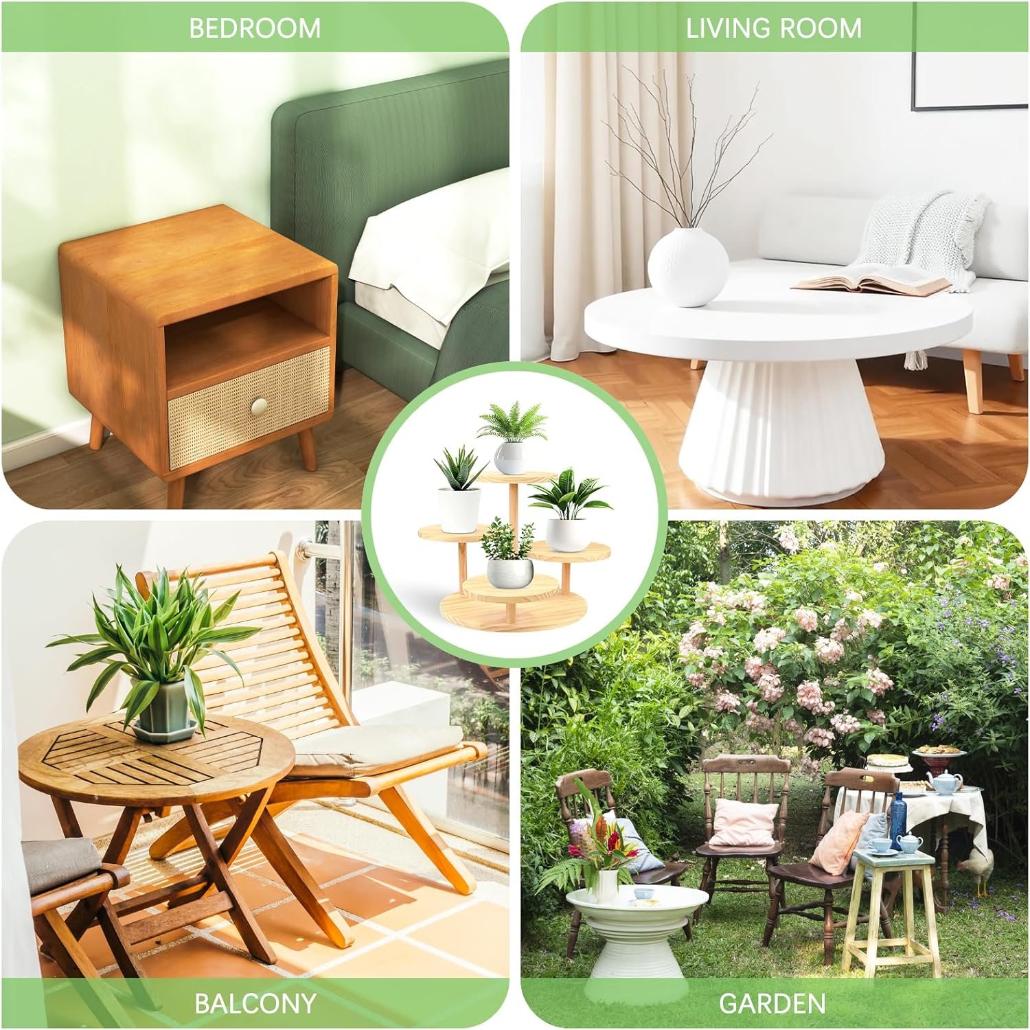 Tabletop Plant Stand Indoor Small 4 Tier Adjustable Wooden Succulent Table Top Window Sill Plant Shelf for Desk,Desktop,Corner Living Room,Outdoor Patio Garden Decorations
