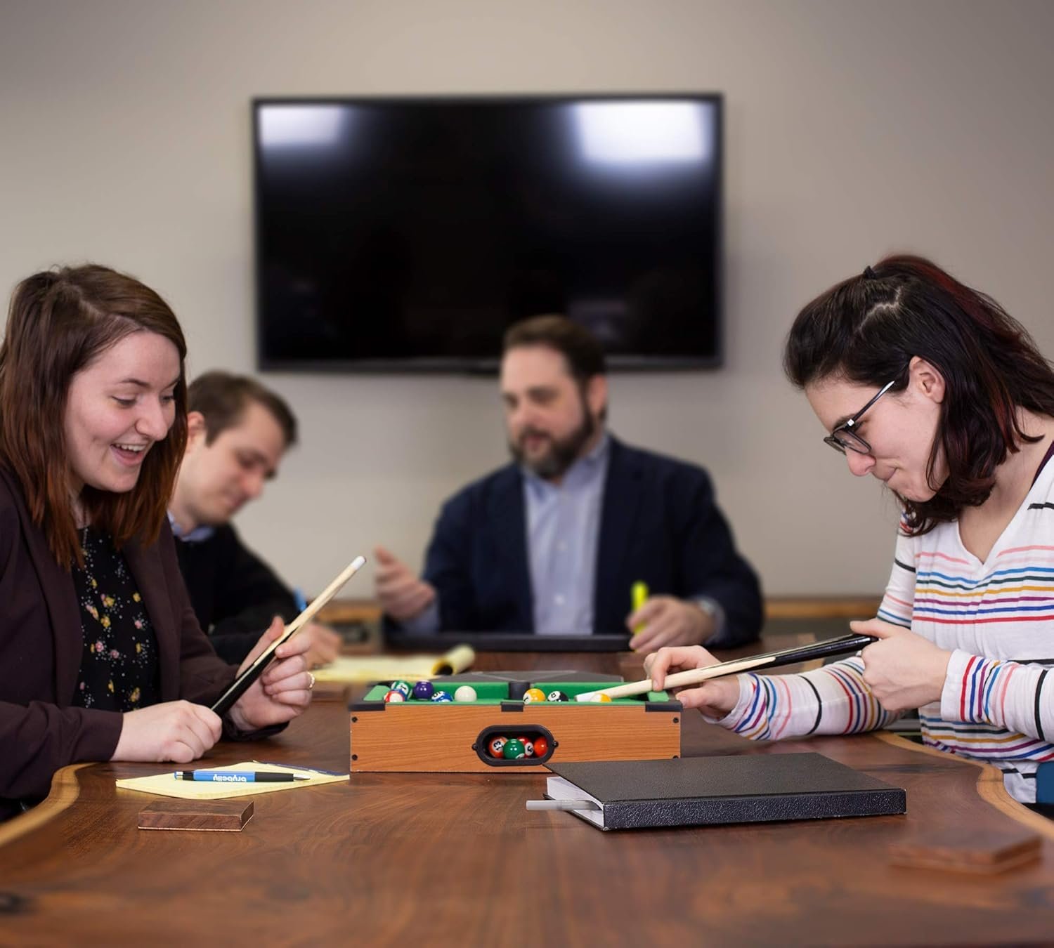 Fits In A Desk Drawer: This small Tabletop Pool set is small enough to fit right in your desk drawer for easy storage. Pull it out anytime you need a pool break