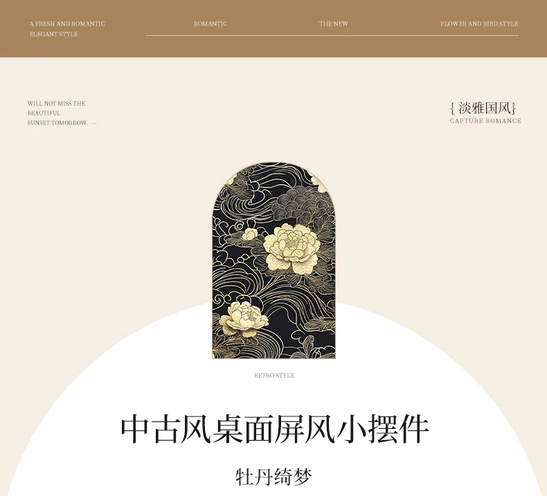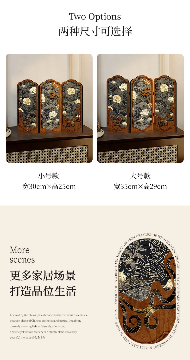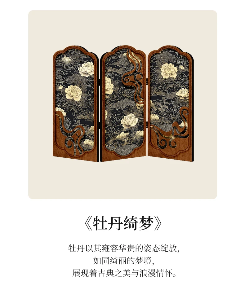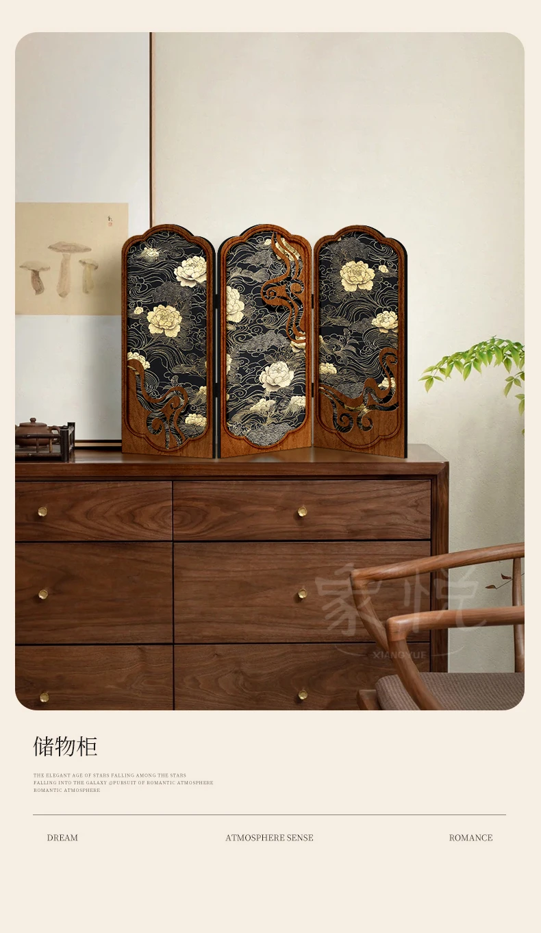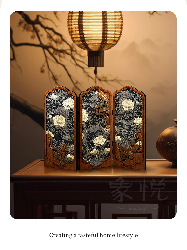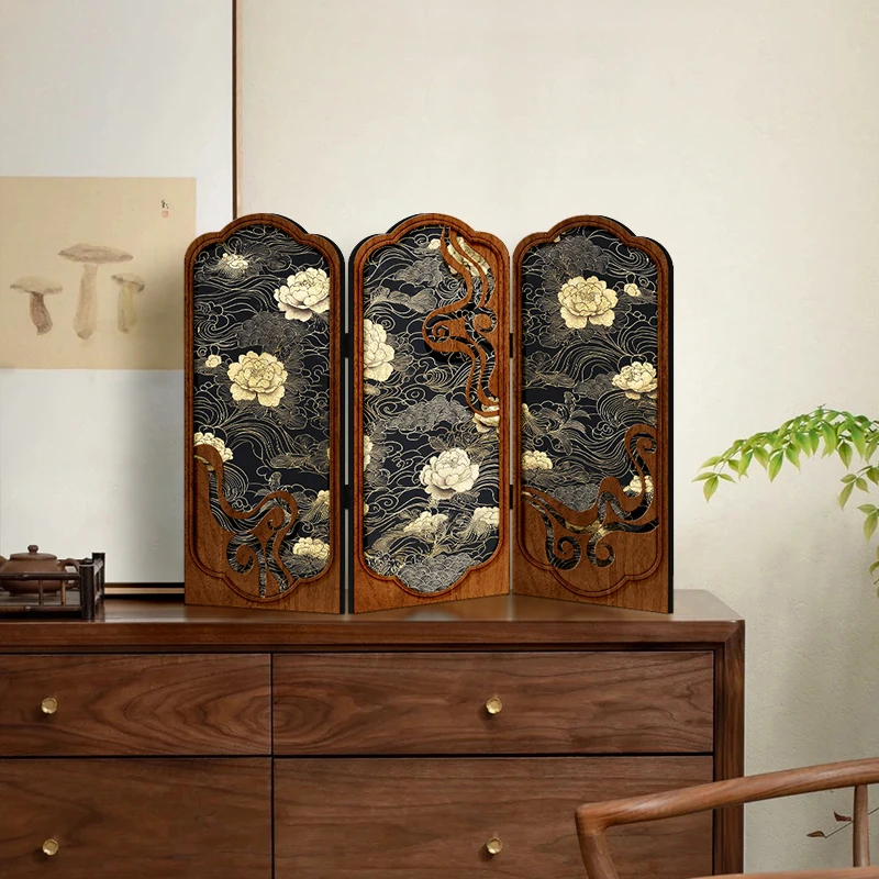 Tabletop screen painting antique living room folding edge cabinet decoration decoration Creative peony gift gift
