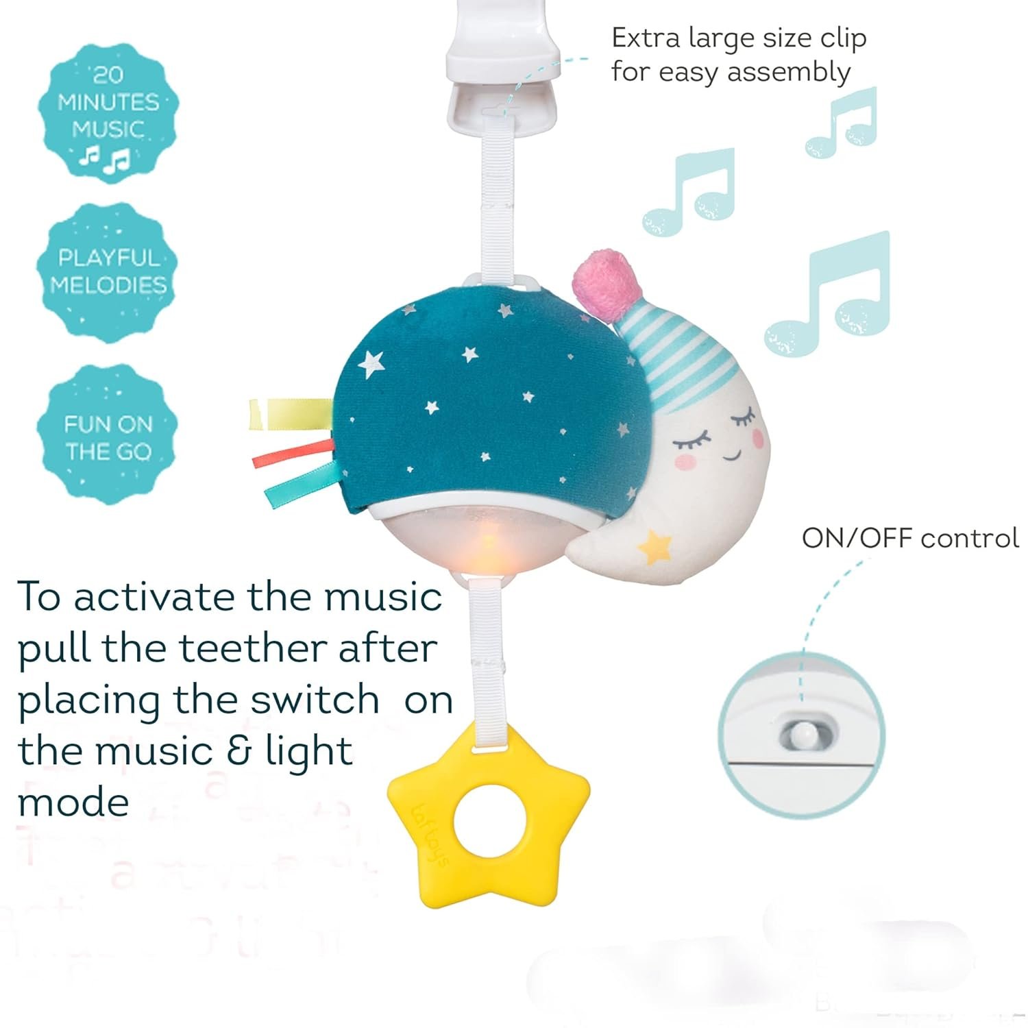 Taf Toys Musical Mini Moon, On-The-Go Pull Down Hanging Music and Lights Infant Toy | Parent and Baby’s Travel Companion, Soothe Baby, Keeps Baby Relaxed While Strolling, for Newborns and Up