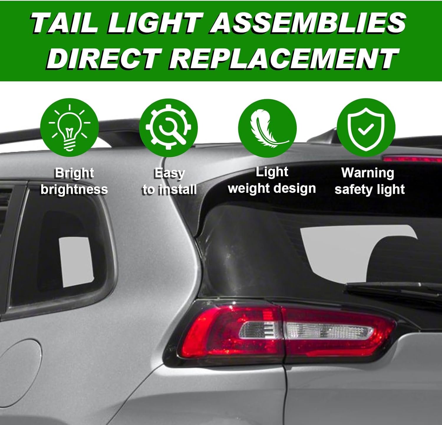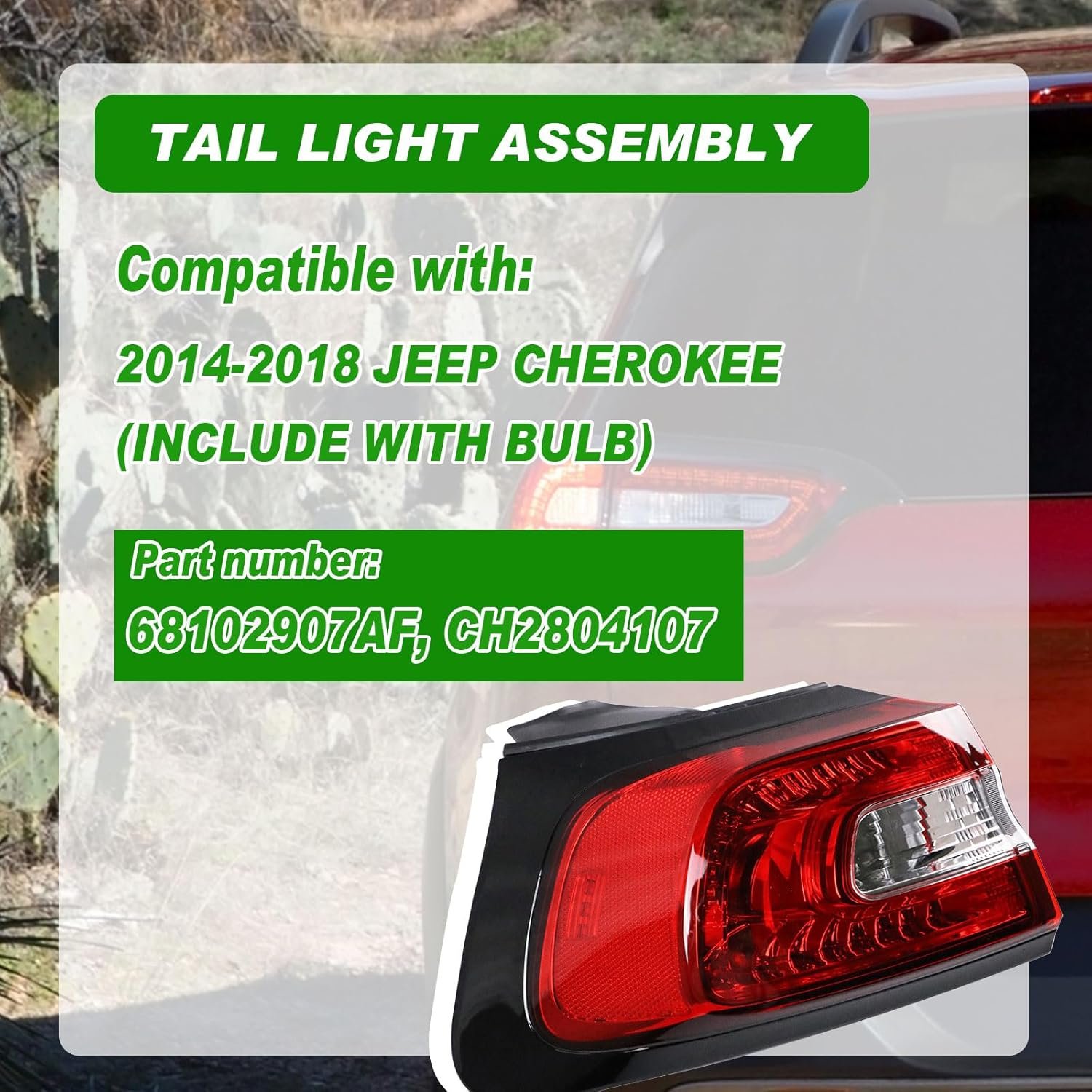 Rear taillight assembly compatible with Jeep cherokee 2014 2015 2016 2017 2018 halogen type. Note: NOT compatible with grand cherokee