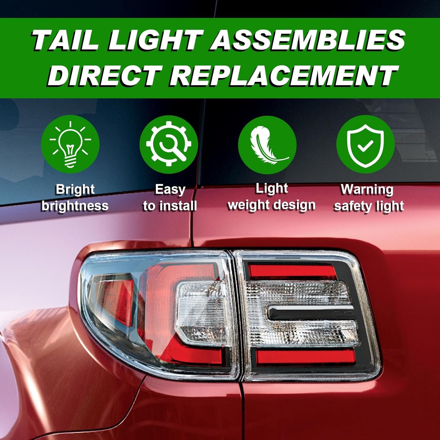 Thank you for choose and purchasing our rear acadia tail lights. If there are any problems or advices with the use of it, we will solve your problems in time and provide the optimal solutions. Please check the vehicle model and year carefully before ordering
