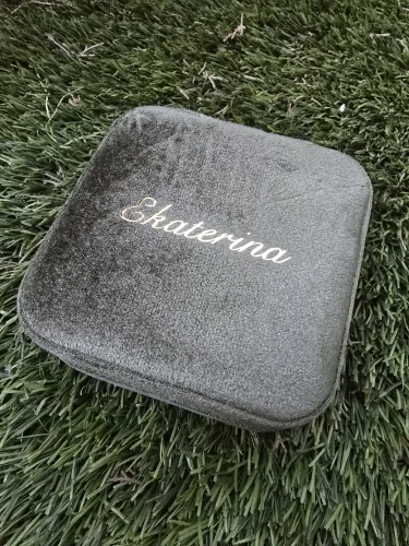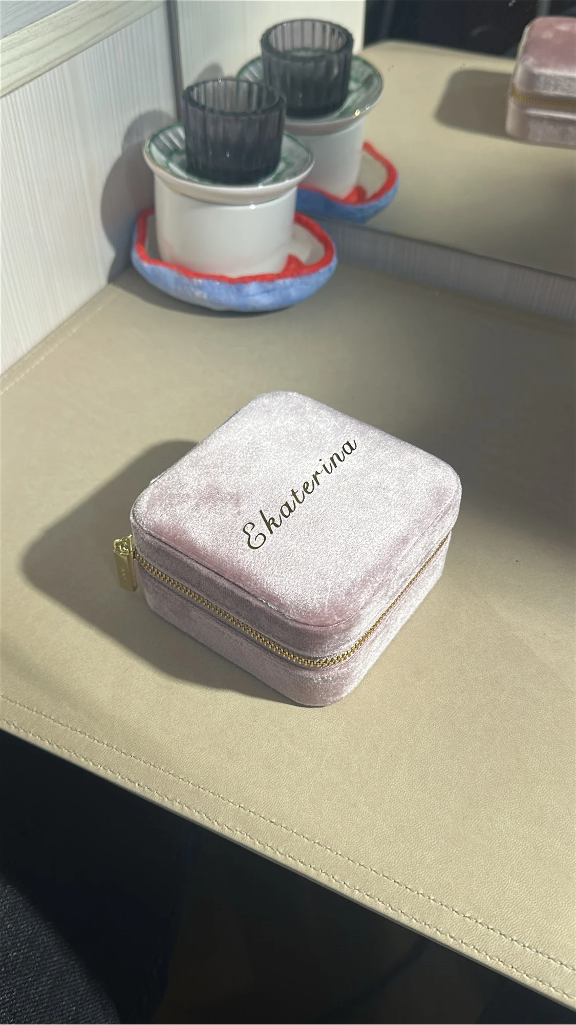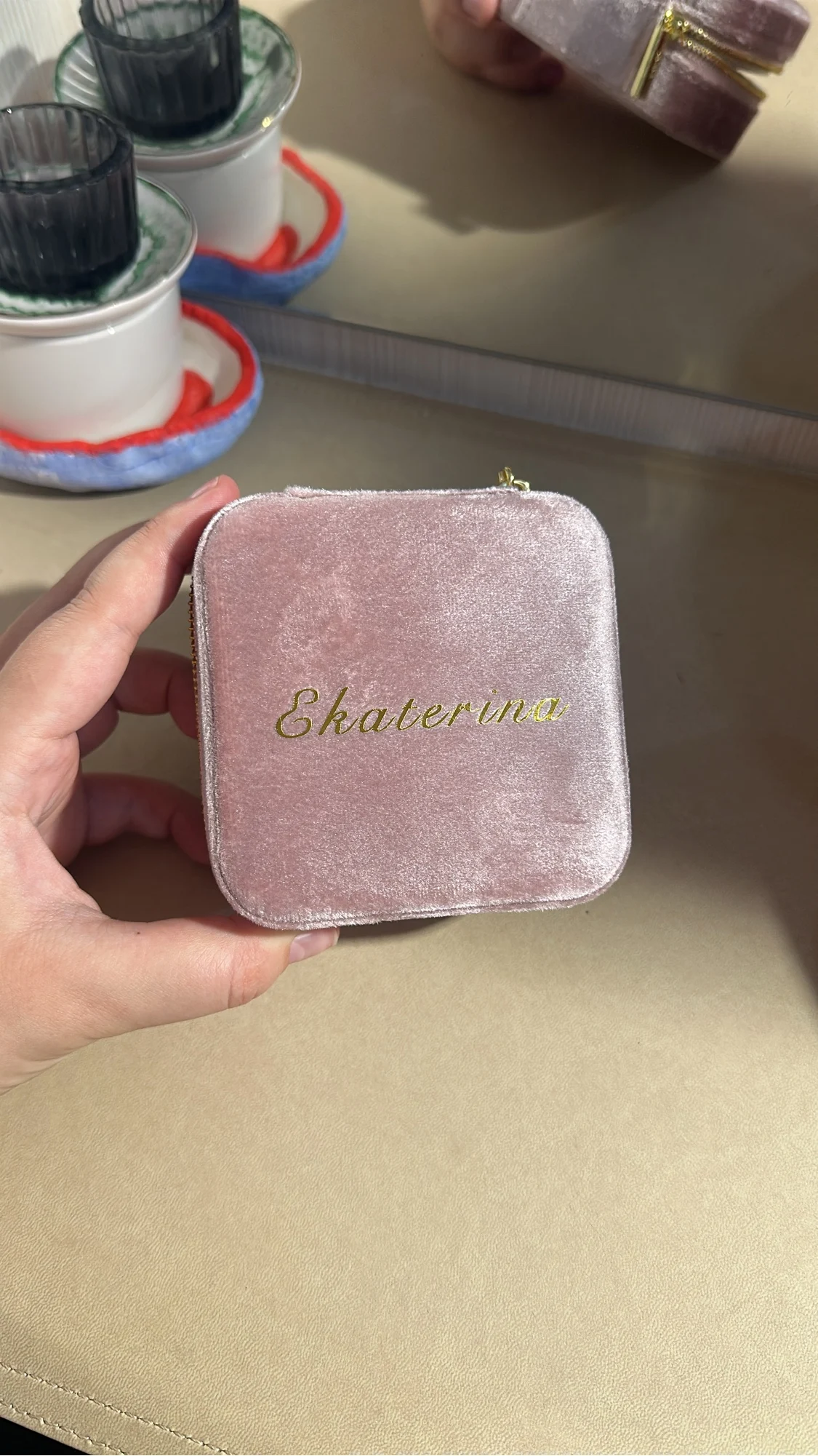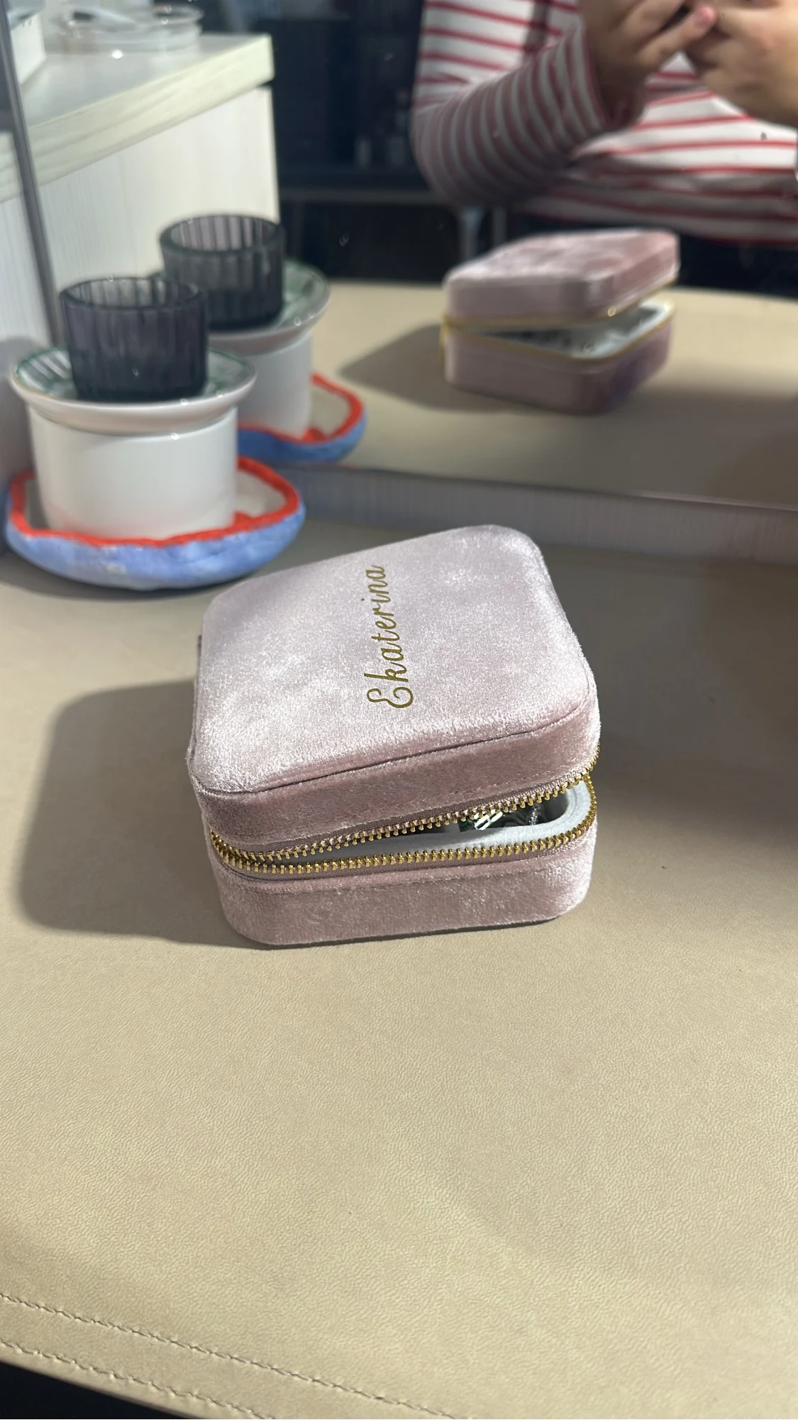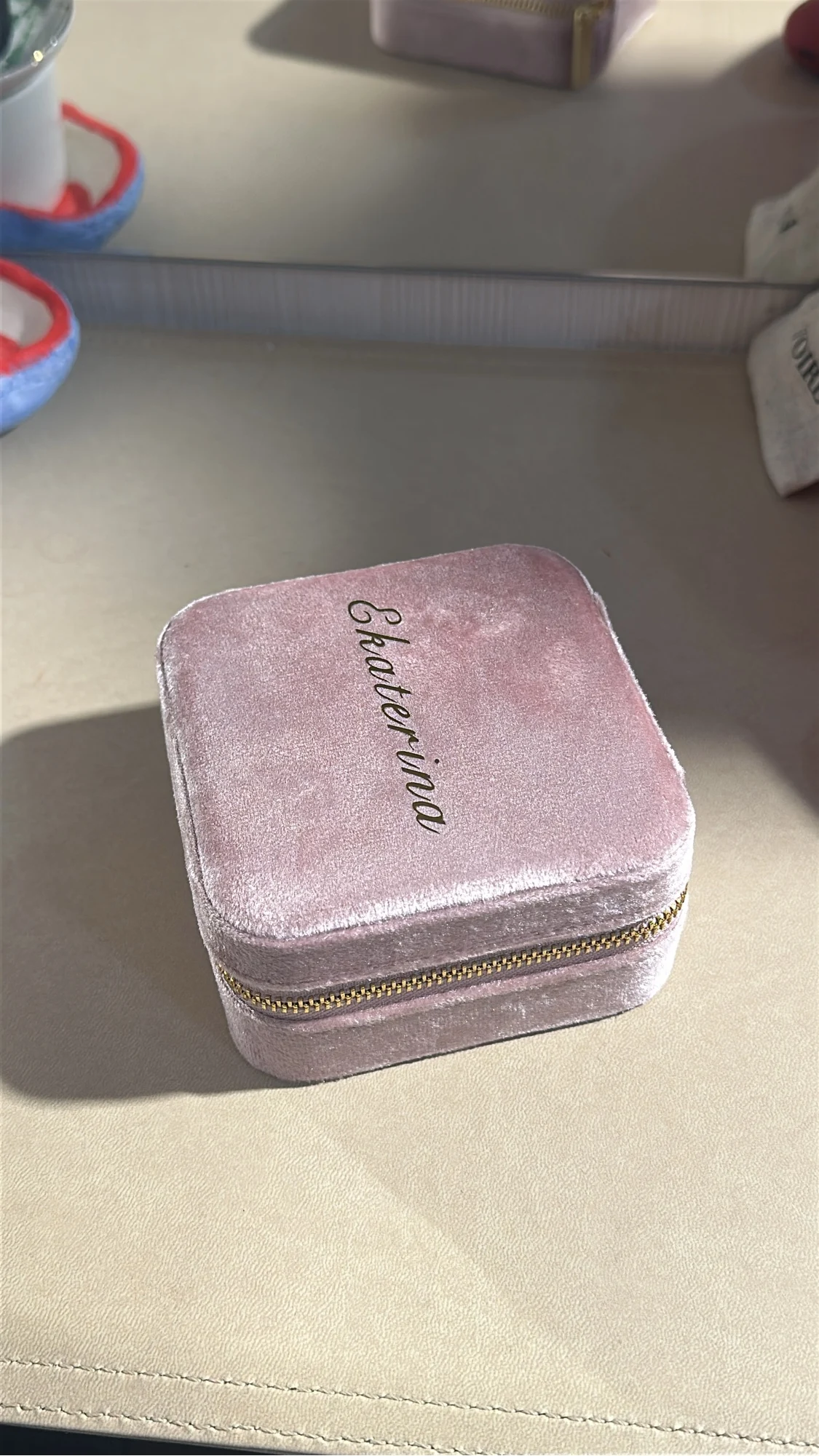 sooooo beautiful! soft, the zipper works perfectly smoothly, doesn’t get stuck. The dividers for earrings can be removed, overall something larger than earrings will fit. Everything inside is neat! Font 21. The color is such a powdery pink – beauty 🤌🏼🥰