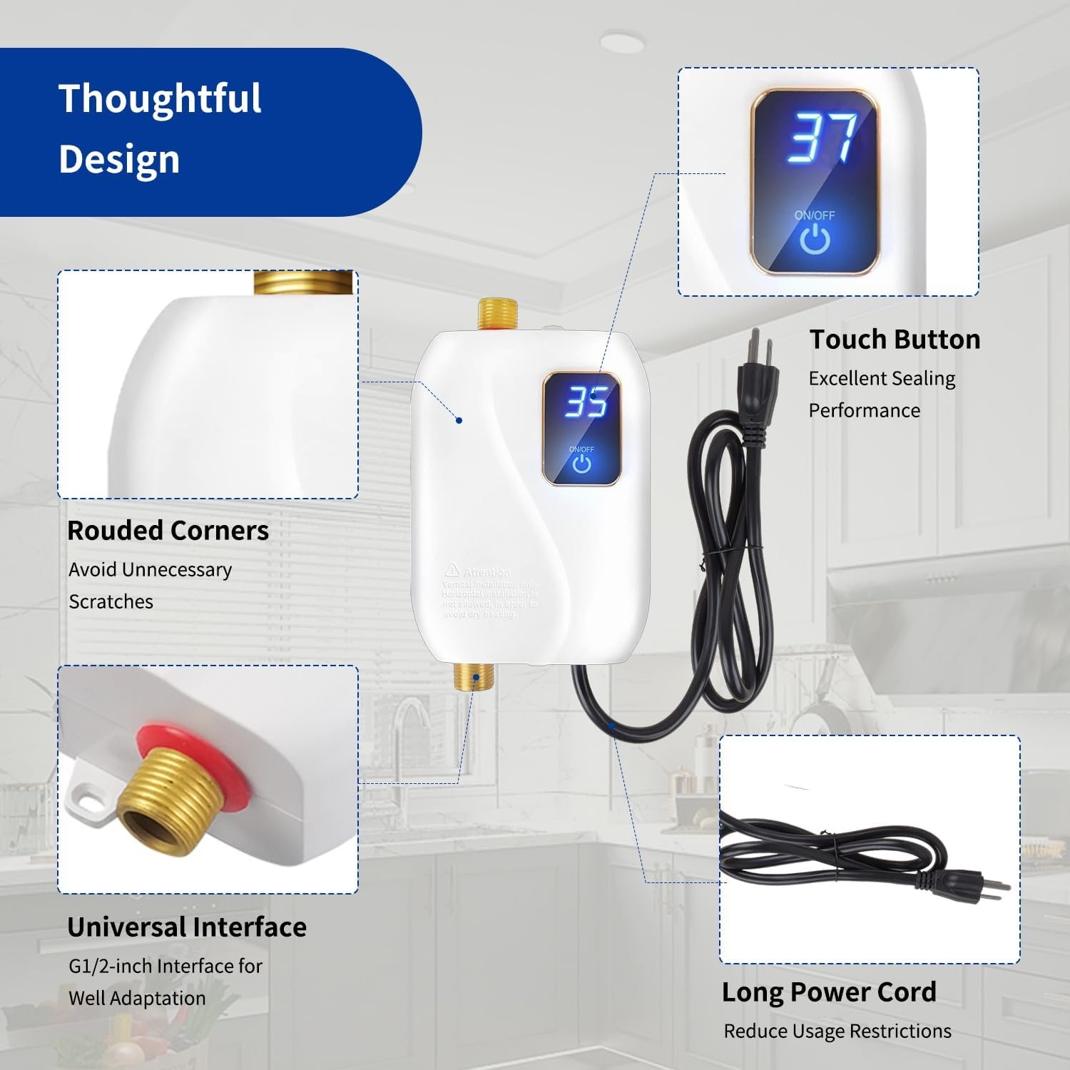 Experience the convenience and efficiency of a 3000W Tankless Water Heater. This electric mini water heater is the perfect solution for American users seeking instant hot water, space-saving design, energy-saving, and convenience.