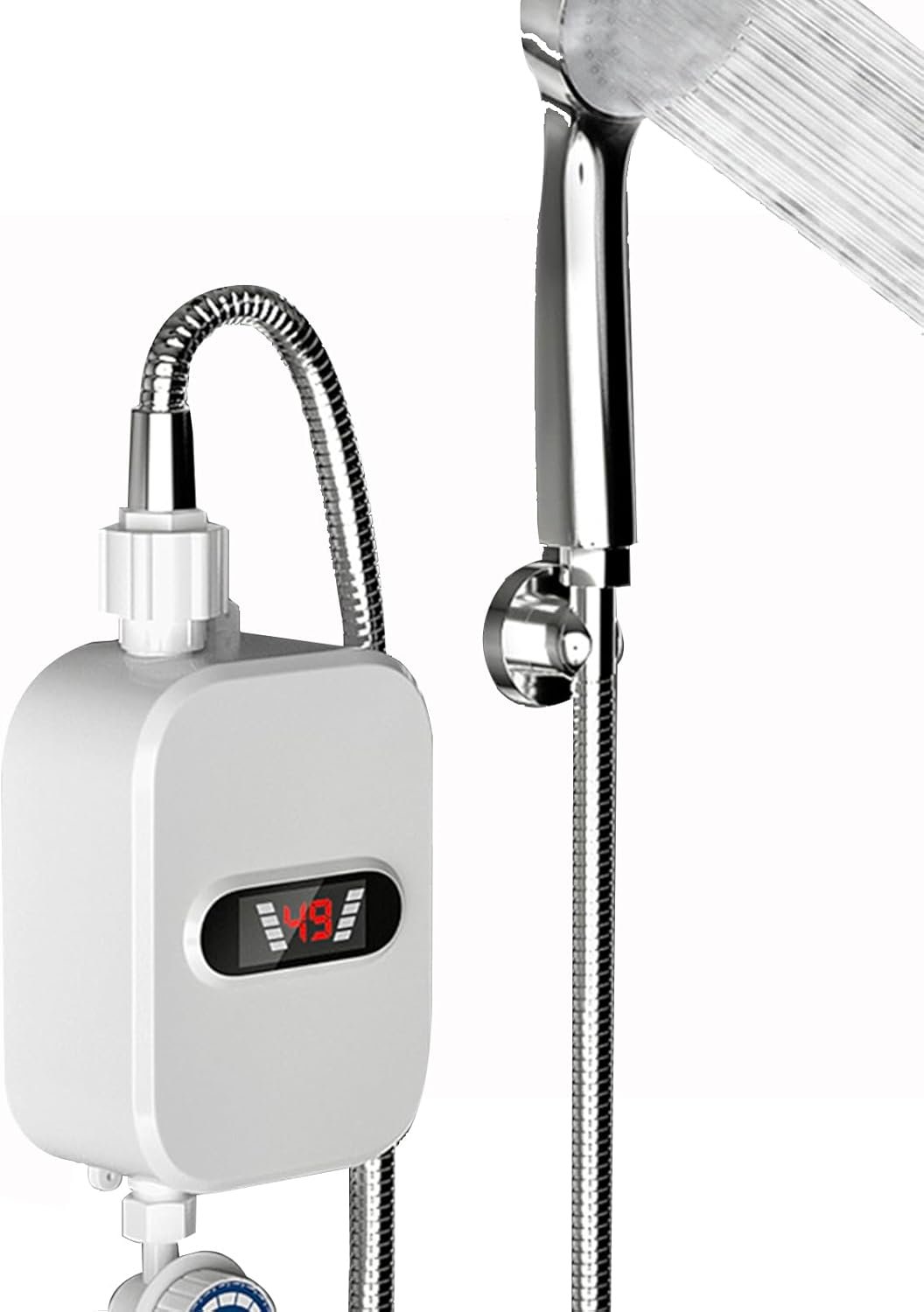 Tankless Water Heater, Electric Instant Hot Water Heater for Shower, 2100W On Demand Rapid Heating, Mini Portable Water Heater for Bathroom, LCD Digital Display