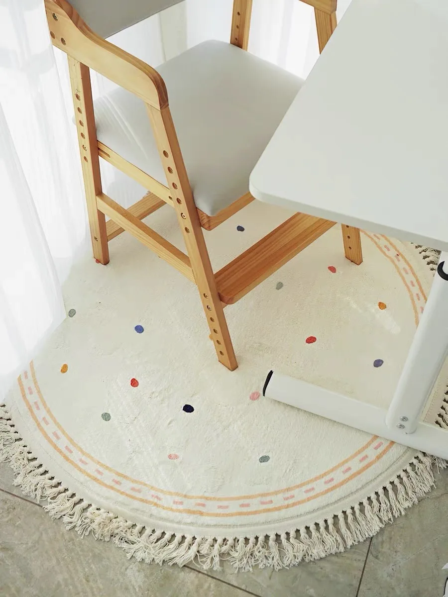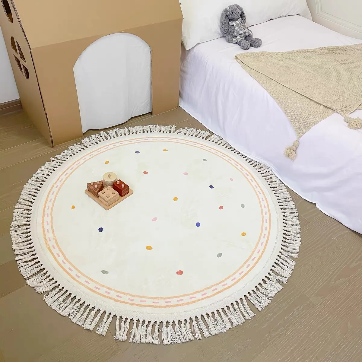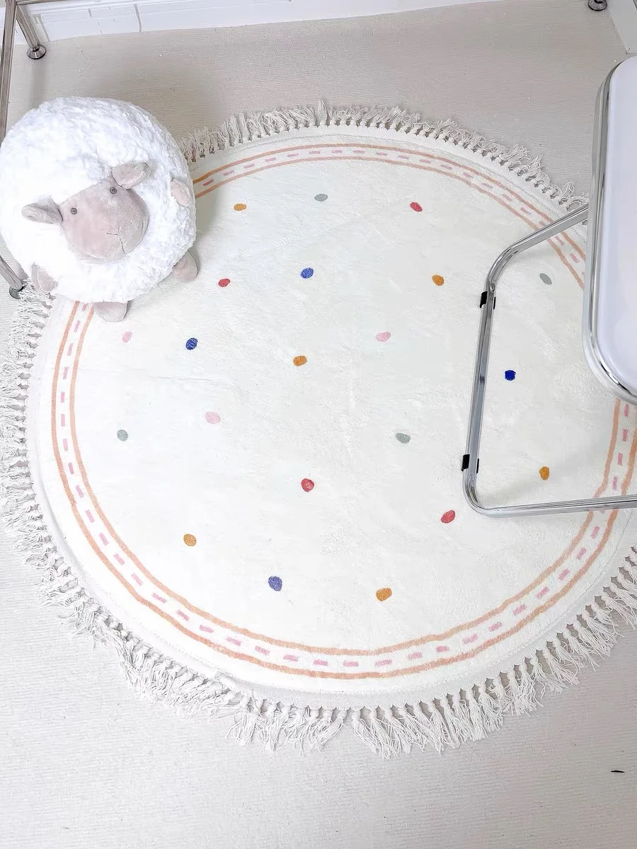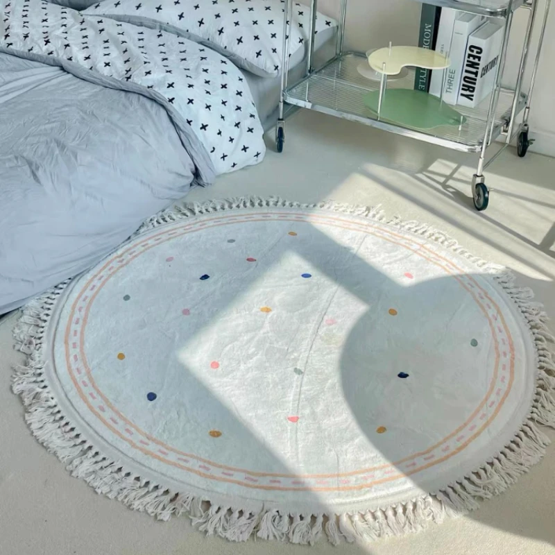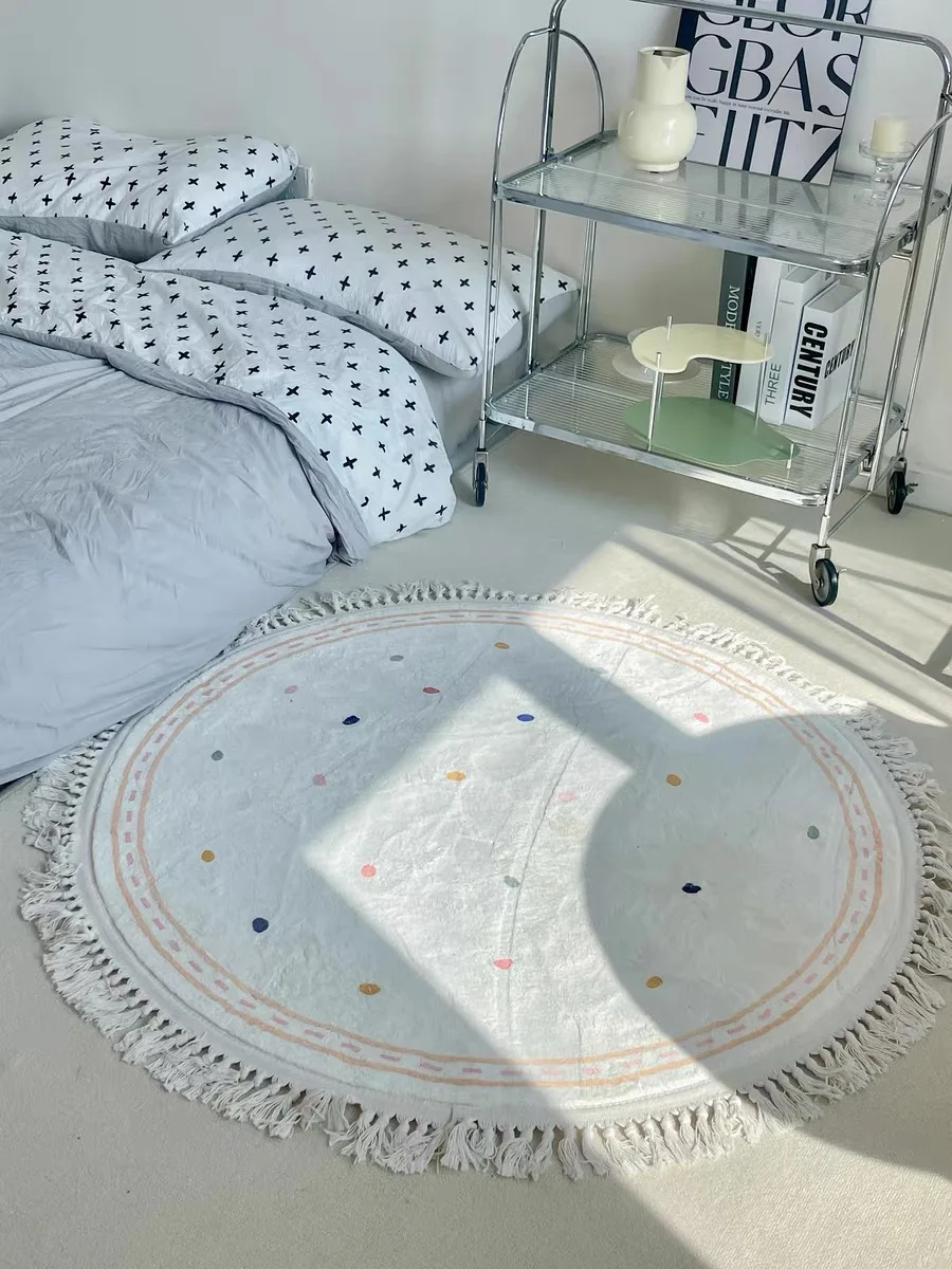 Tassel Round Living Room Large Area Carpets Cute White Children’s Carpet Spotted Pattern Girl’s Bedroom Rug Plush Soft Rugs 양탄자