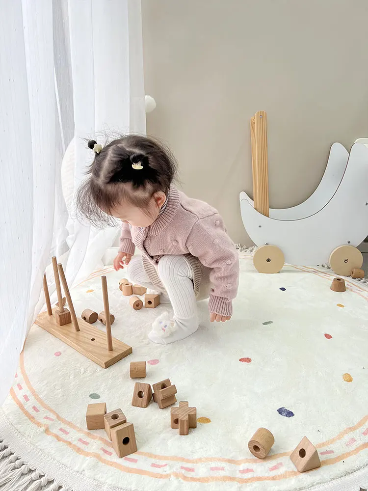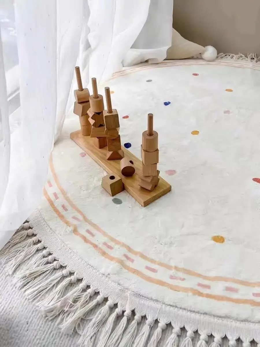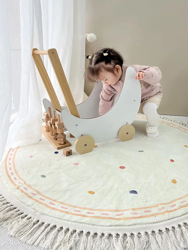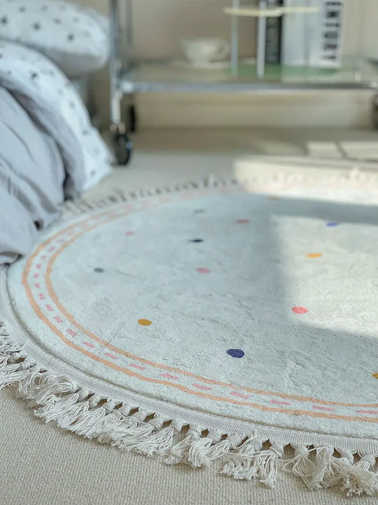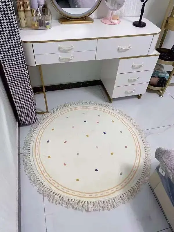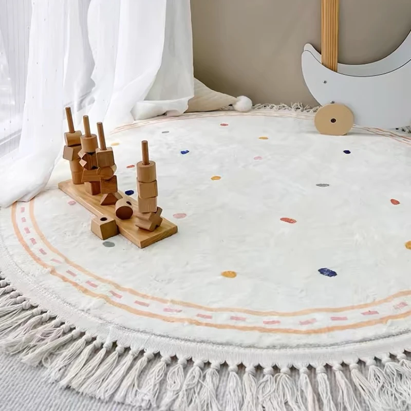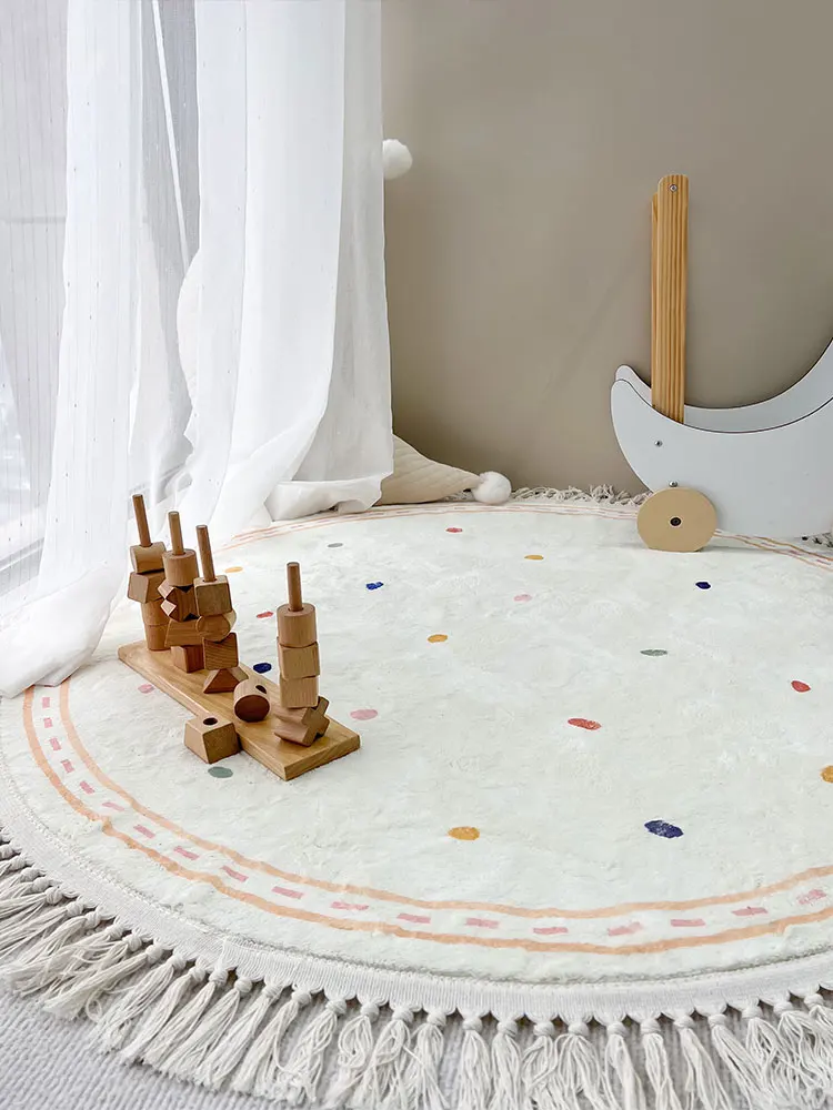 Tassel Round Living Room Large Area Carpets Cute White Children’s Carpet Spotted Pattern Girl’s Bedroom Rug Plush Soft Rugs 양탄자