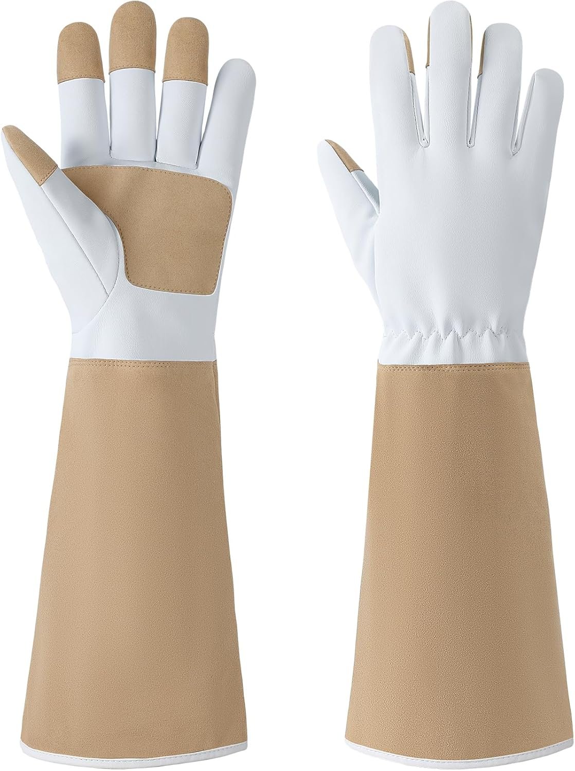 Tavaleu Gardening Gloves for Women, Leather Long Sleeve Garden Gloves, Breathable Thorn-Proof Gloves for Gardening & Yard Work Medium