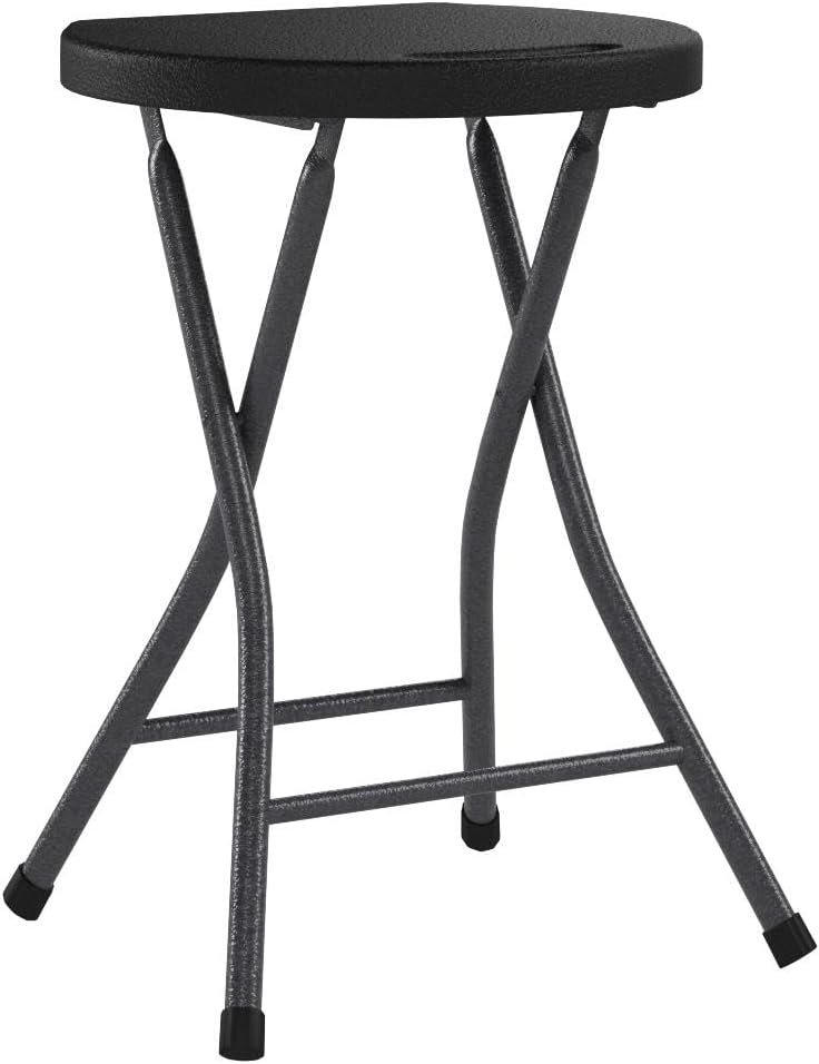 Easy To Carry – Open Dimensions: 11.8″L x 11.8″W x 18.1″H. Folded Dimensions: 13″L x 2.4″W x 28.1″H. This plastic desk stool has a carry handle in it. Easy to carry and suitable for indoor and outdoor use. 18 inch stool weighs 4.5 pounds each and can be easily carried anywhere for parties and shows.