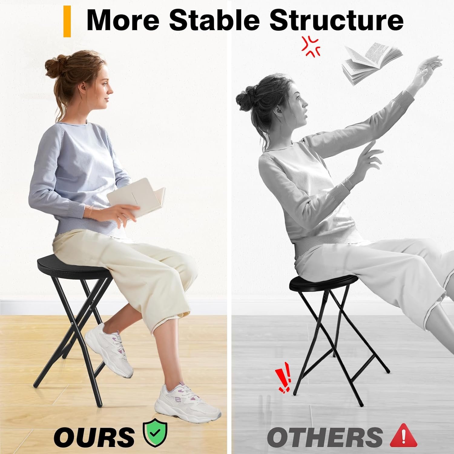 TAVR Furniture Portable Folding Chair with Handle, Heavy Duty Round Fold Stool Chair with 500lbs Capacity for Adults, 18 Inch Foldable Stool for Dorm, Kitchen, Vanity, Church and Outdoor use