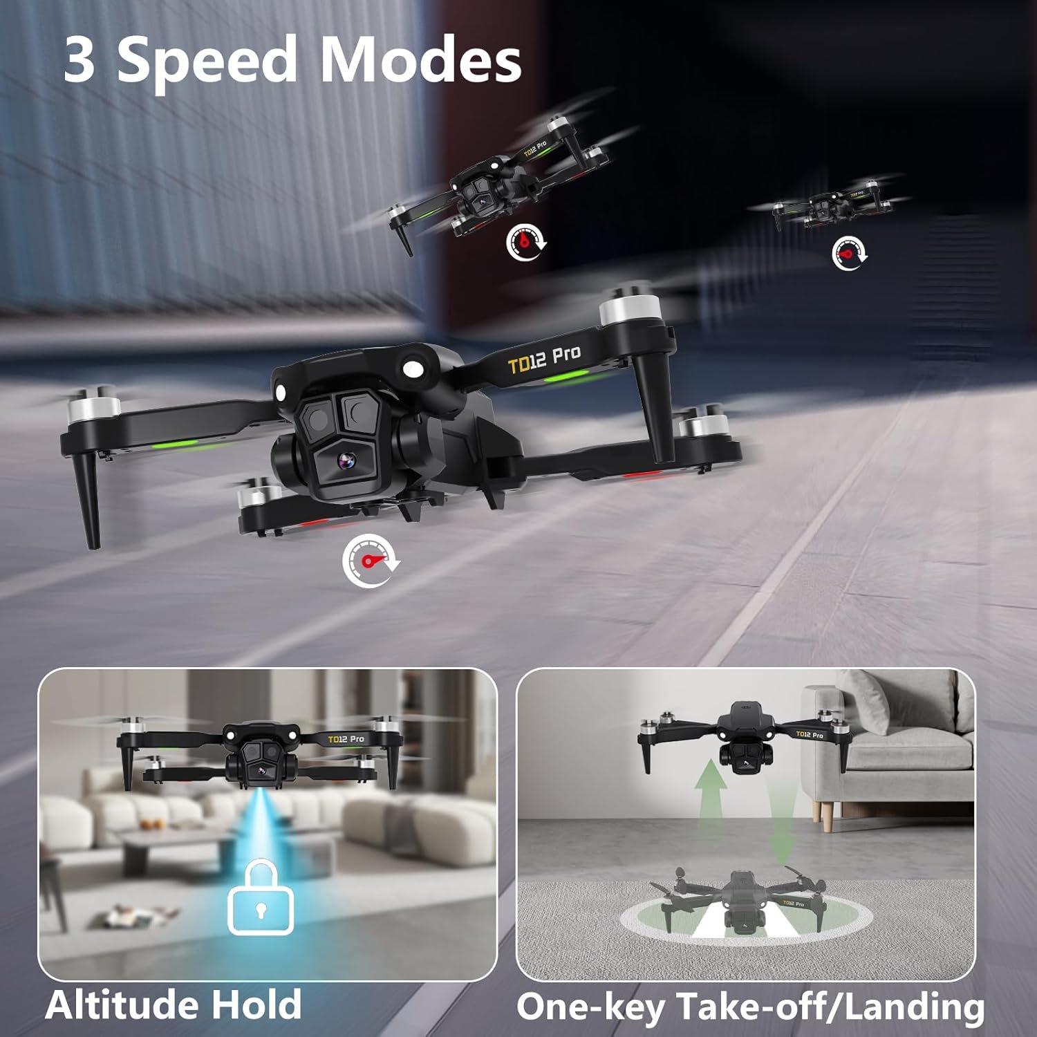 TD12Pro Drone with 1080P HD Camera, Brushless Motor, Optical Flow Positioning, Level 3 Wind Resistance, 3 Speed Modes, Drones for Adults Beginners, Outdoor Photography Foldable RC Quadcopter