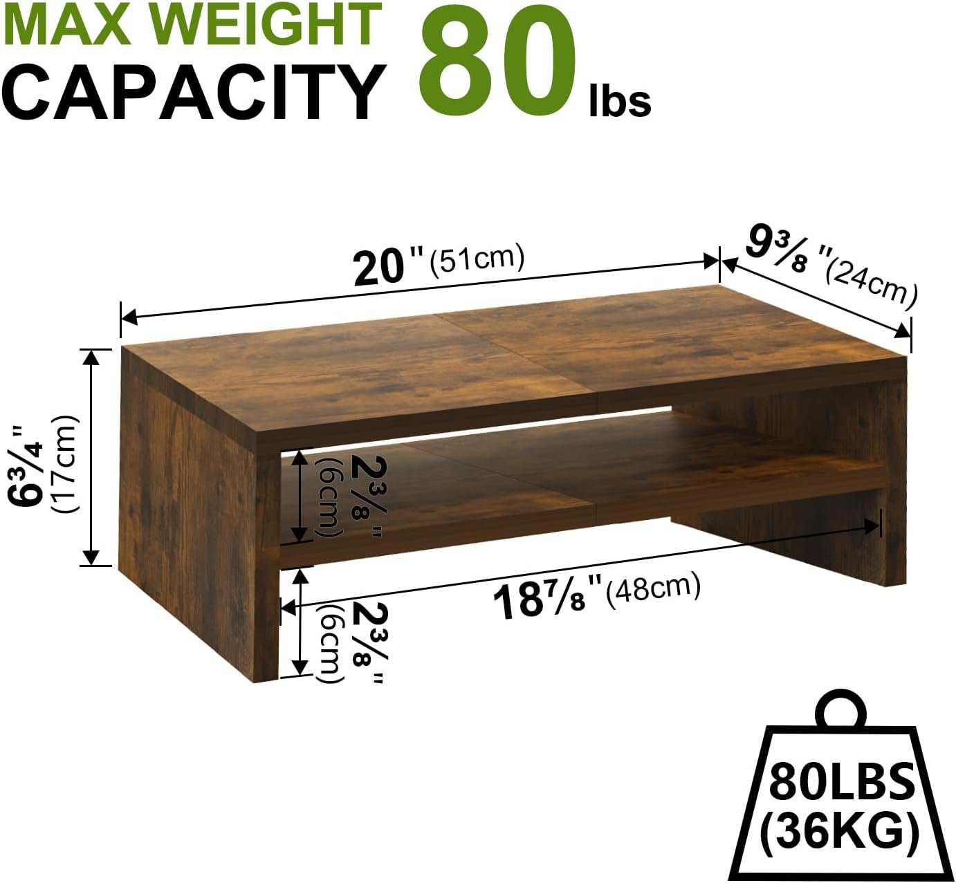 【Multi-function Stand】The monitor Stand can be used as a laptop stand, computer riser, desktop stand, printer stand. It provides enough area for storing laptops, keyboards, mouse, and keep your desktop tidy.