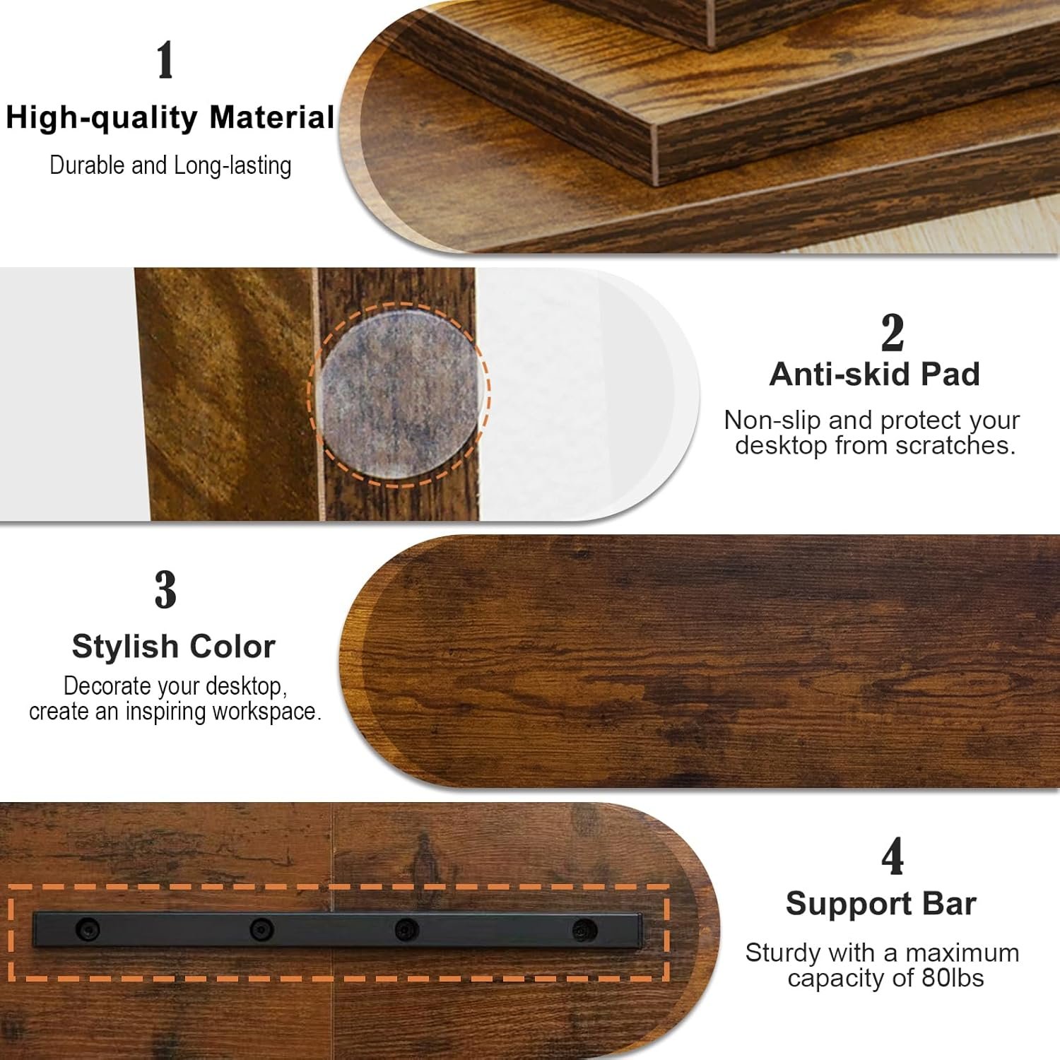 【Sturdy and High-quality】It can hold 80Ibs, strong and sturdy. made of high quality MDF wood board. Minimal, modern design that fits in easily with most home decor.