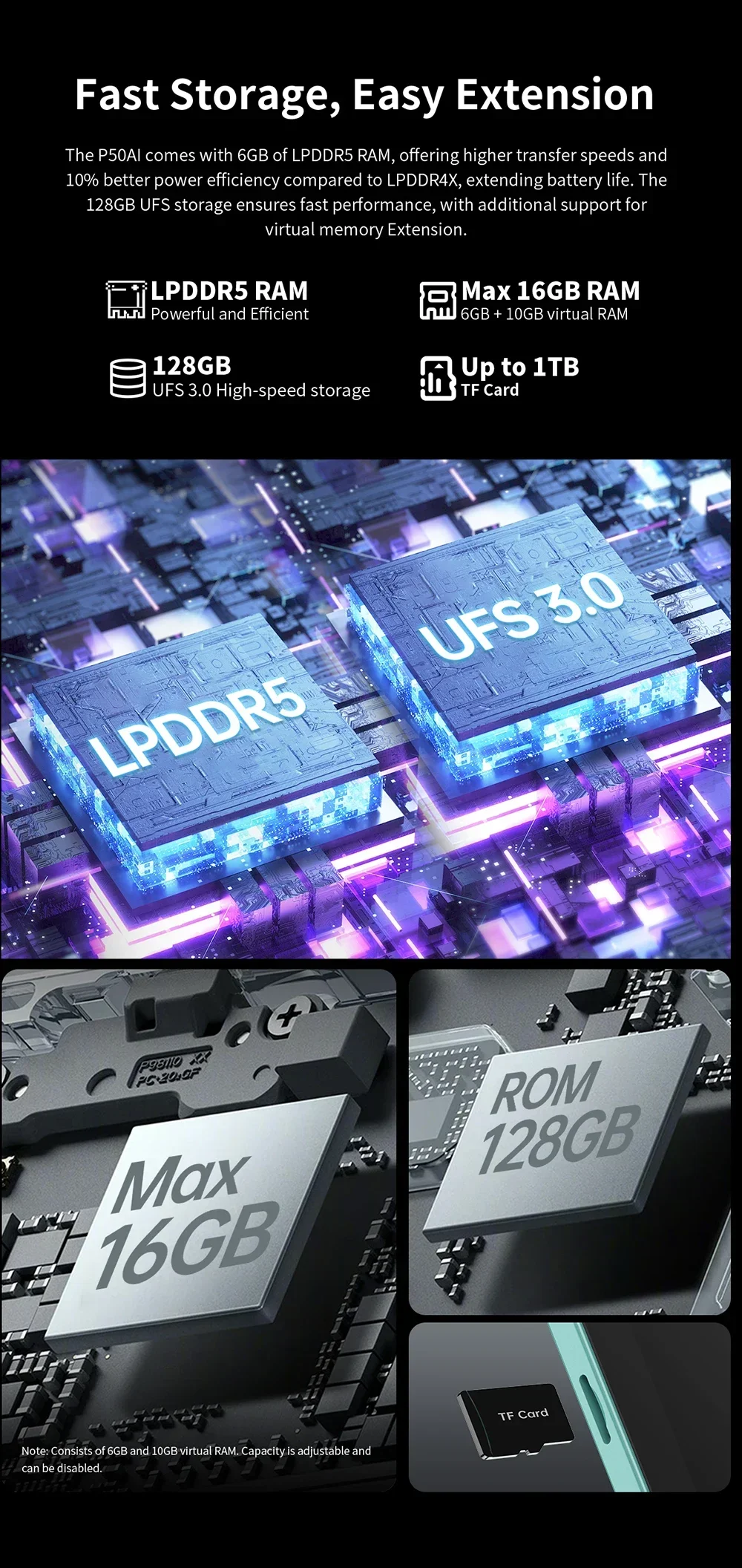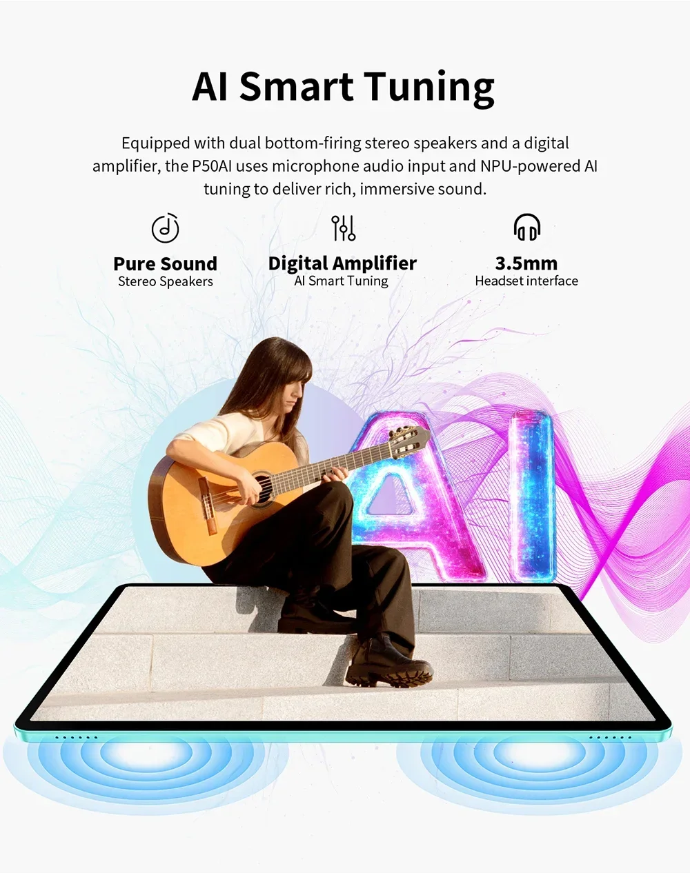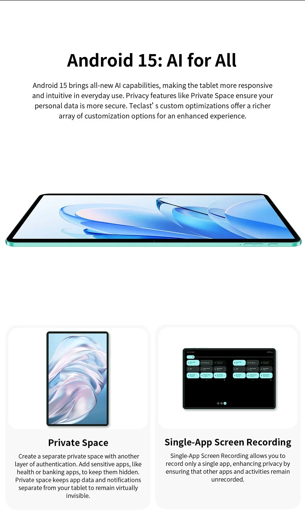 Teclast P50 Ai Tablet Allwinner A733 Octa-Core 11inch TDDI Screen 6GB RAM 128GB ROM Android15 WiFi6 7000mAh Dual Type-C Charging