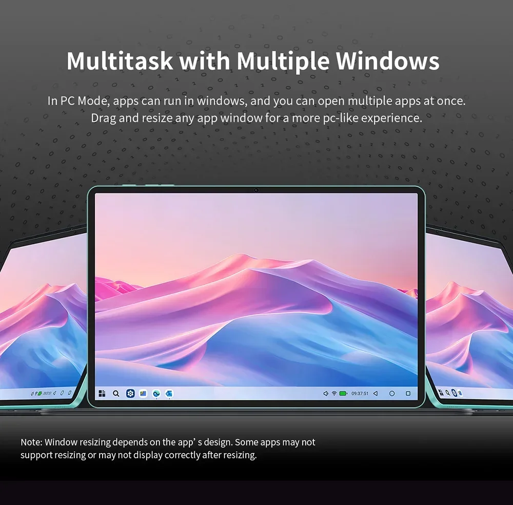 The tablet comes with all the items shown in the product image, which include an English keyboard, a Bluetooth mouse, a foldable protective cover, a charging cable, earphones, a stand, and an OTG adapter. The device’s features work; the PC mode works and can be operated on a TV, but there is some flickering on the screen after a short period of connection. I don’t know the reason for this, and the rest of the artificial intelligence features are acceptable, not excellent but acceptable to some extent.
