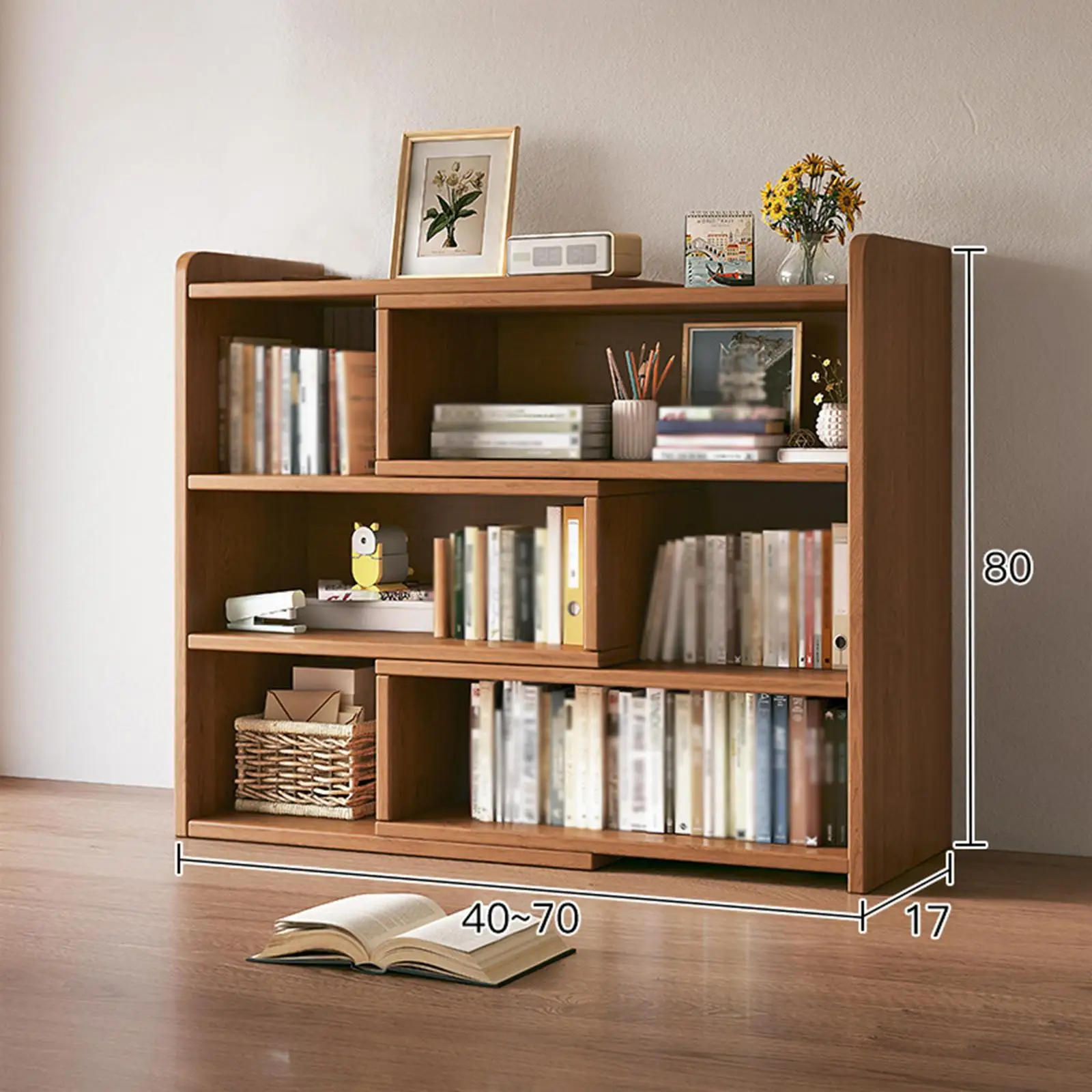 ã€Versatile Storage Solution】: This retractable bookshelf offers a creative way to organize your space, transforming clutter into a neat and tidy area. Its adjustable design allows you to customize the width, making it suitable for small space