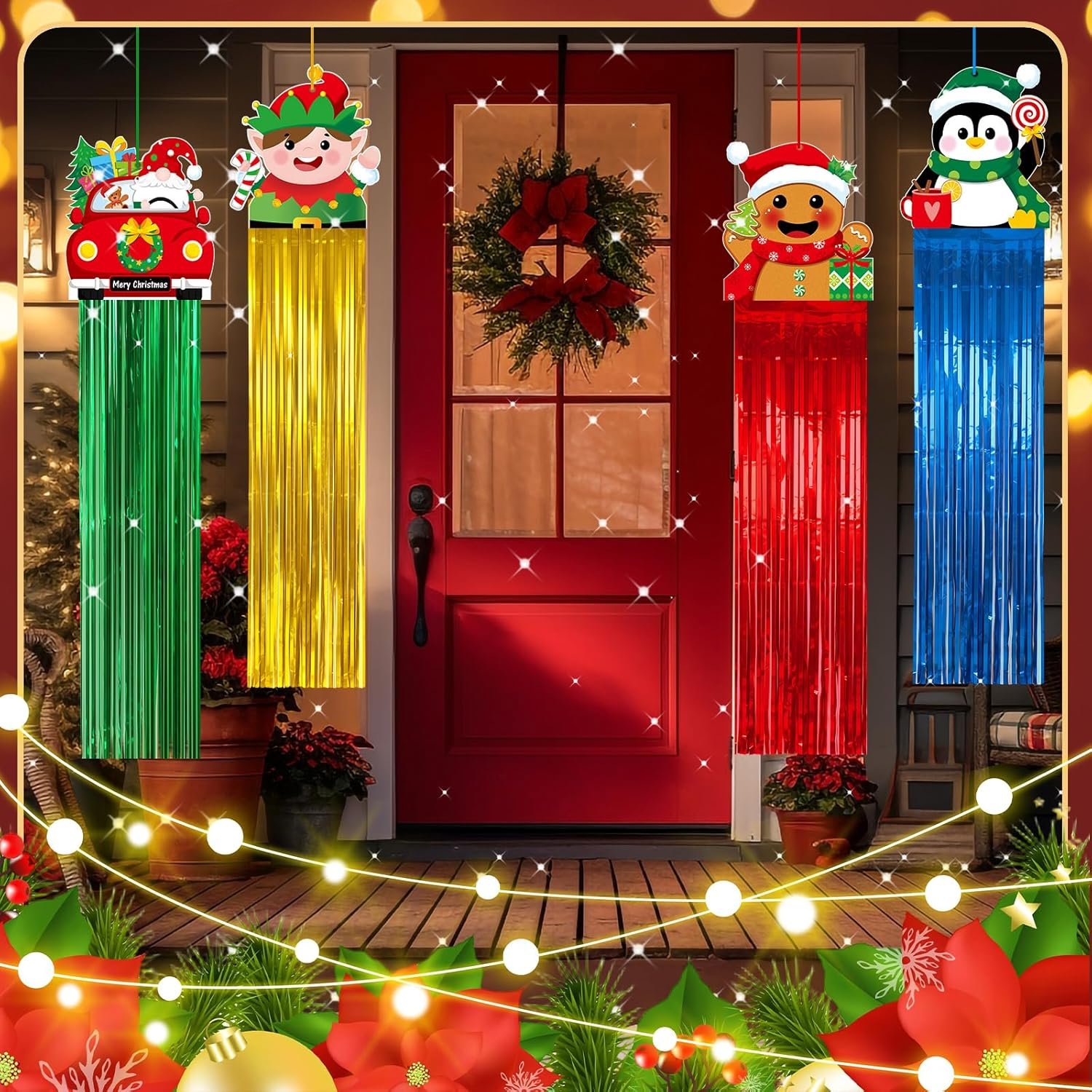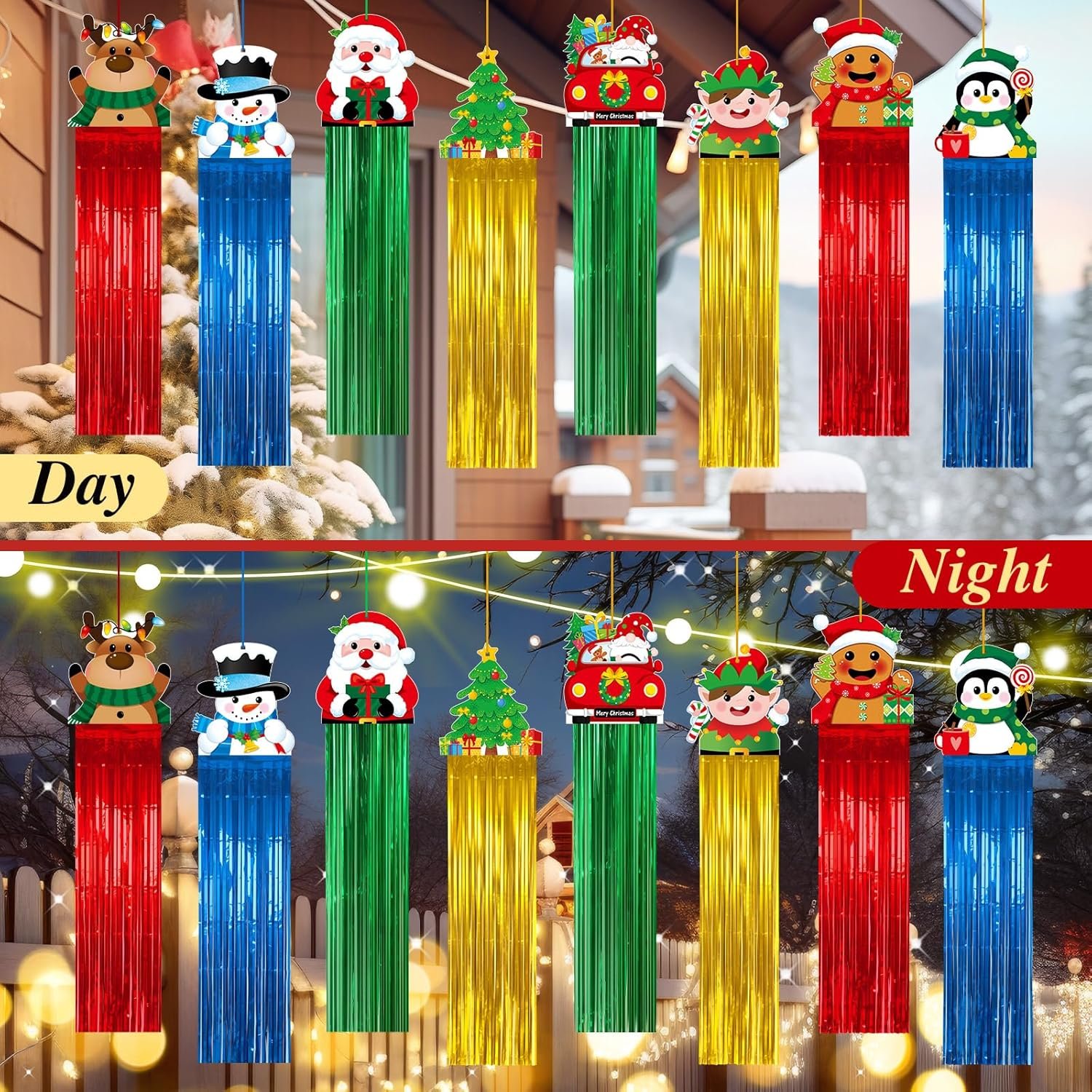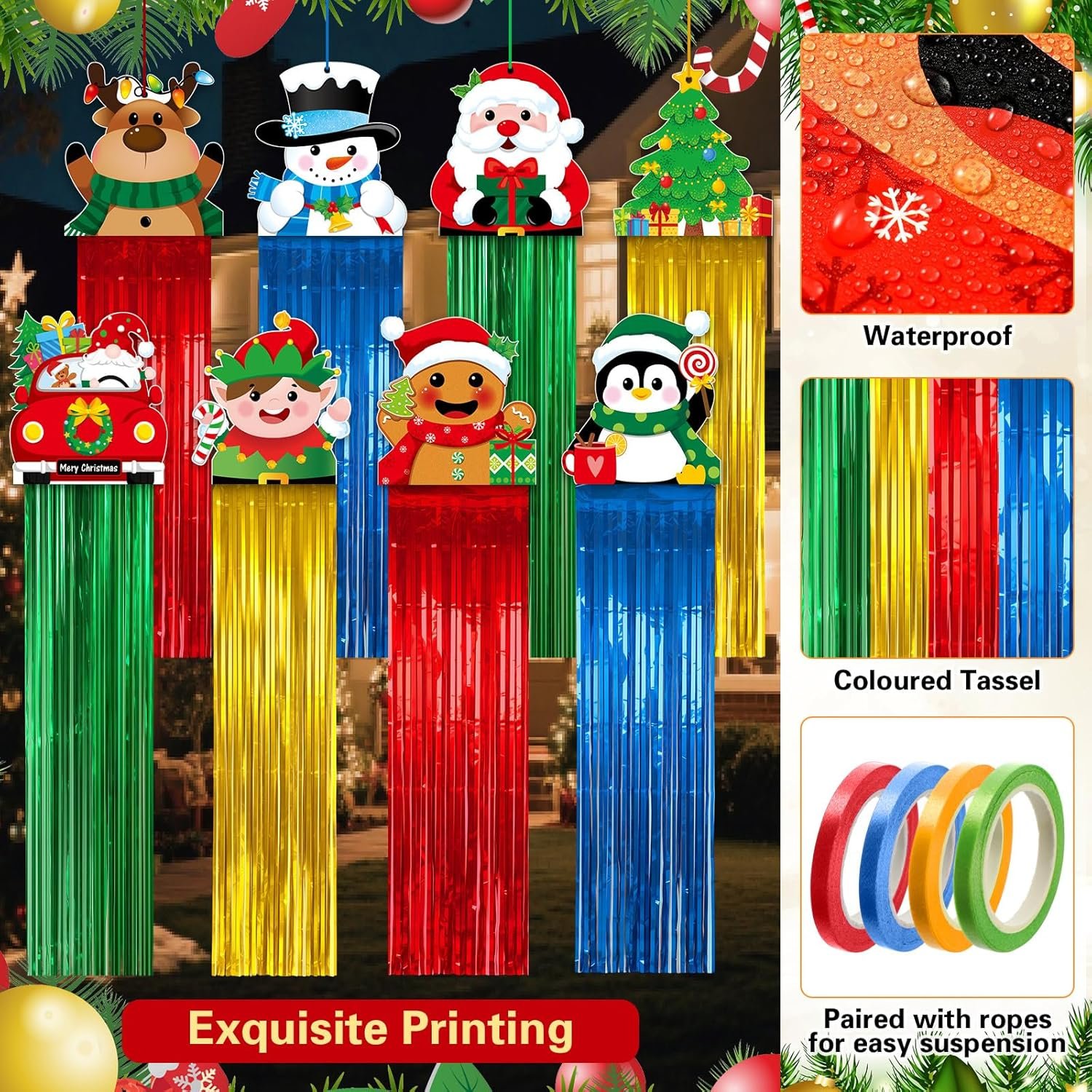 Tenceur 8 Pcs Large Outdoor Christmas Santa Claus Hanging Decorations with Tassel 41 Inch Jumbo Snowman Deer Party Ceiling Streamers Decoration for Indoor Home Lawn Yard Garden Supplies